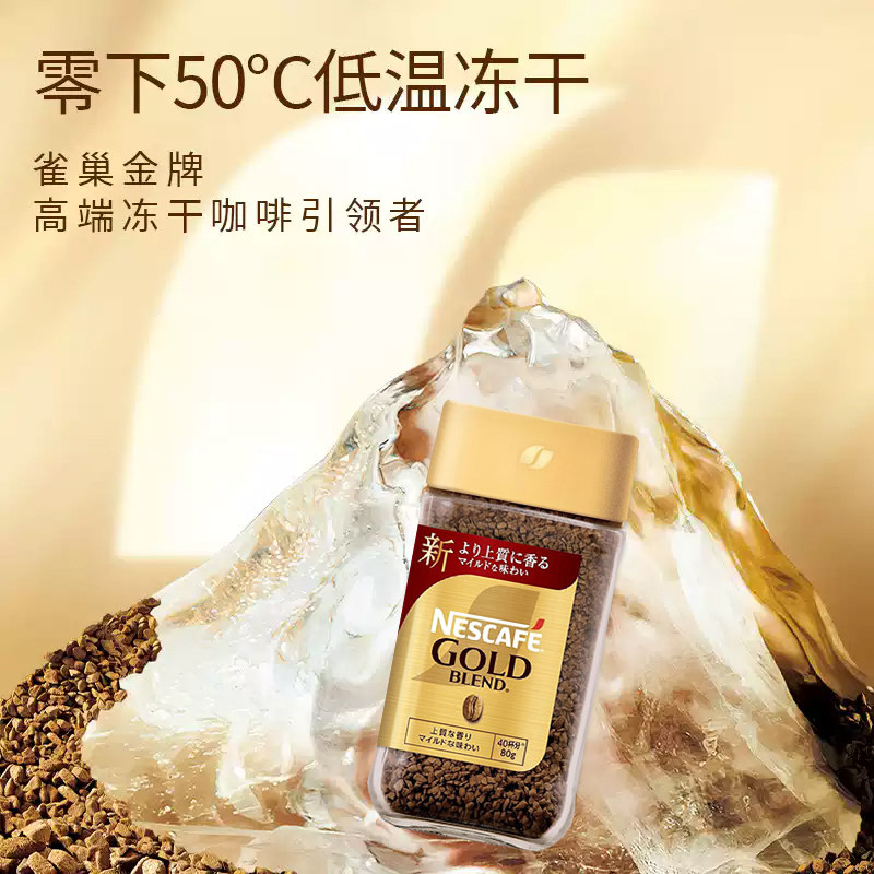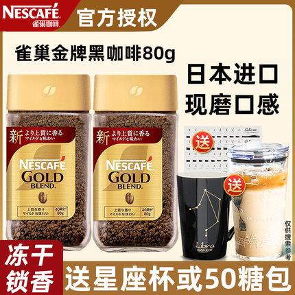 日本进口雀巢金牌黑咖啡冻干速溶纯黑咖啡粉无蔗糖冰美式80g瓶装
