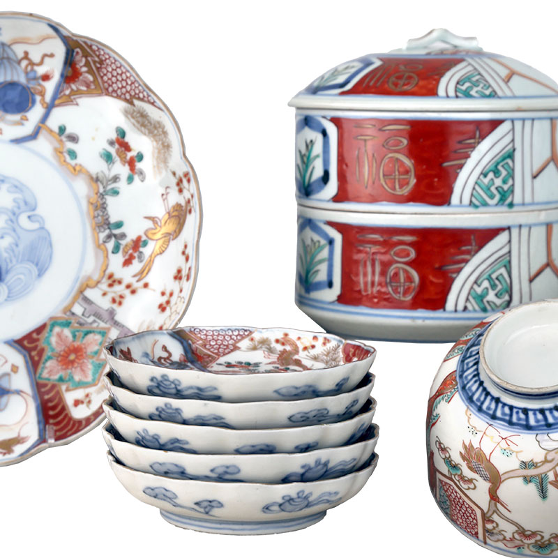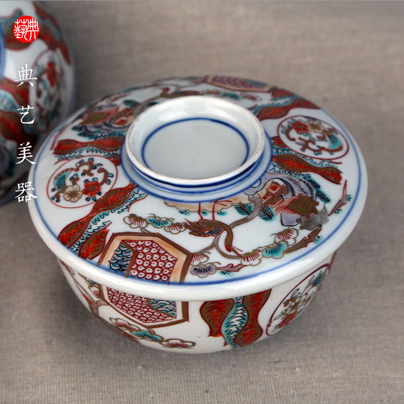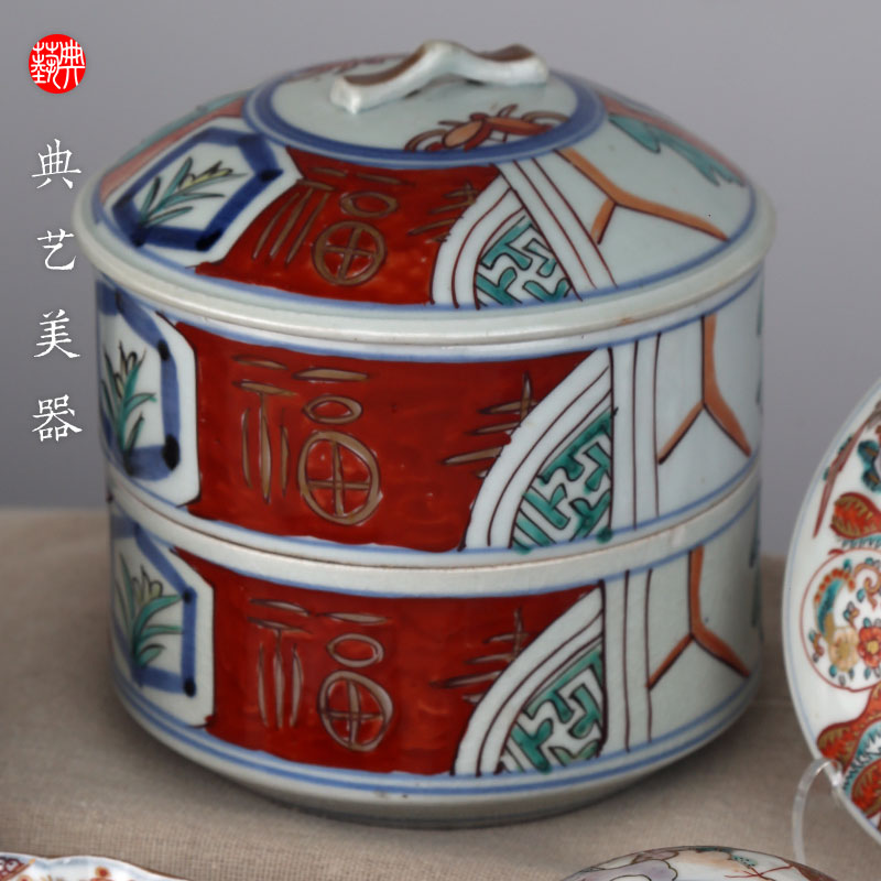 日本古伊万里系系茶具仿明成化五彩盘组盖碗三重段盒日式茶道古陶