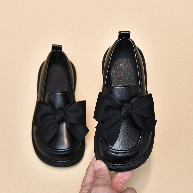 韩版甜美大蝴蝶结女童乐福鞋中小童学院风儿童单鞋黑色皮鞋表演鞋
