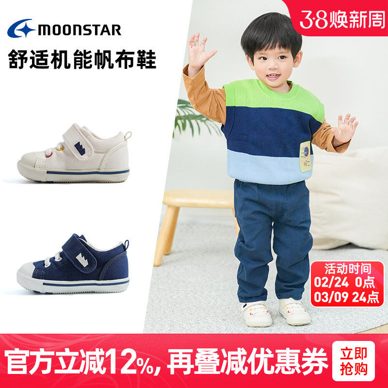 MOONSTAR月星1-8岁宝宝机能鞋帆布鞋儿童学步鞋硫化稳步鞋