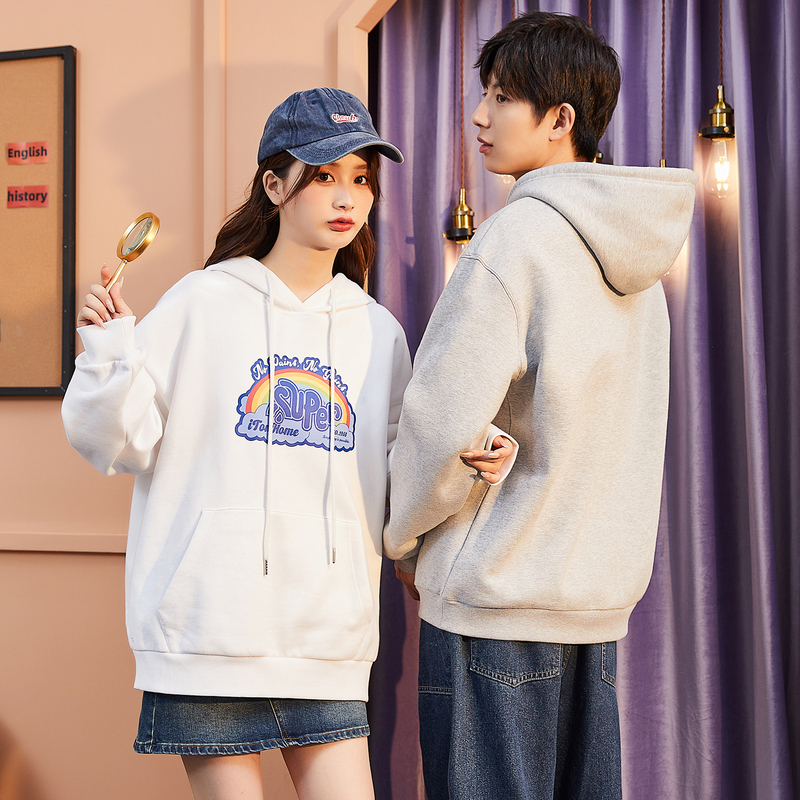 唐狮2025春秋季新款连帽情侣卫衣男生白色宽松可爱情侣装女外套潮