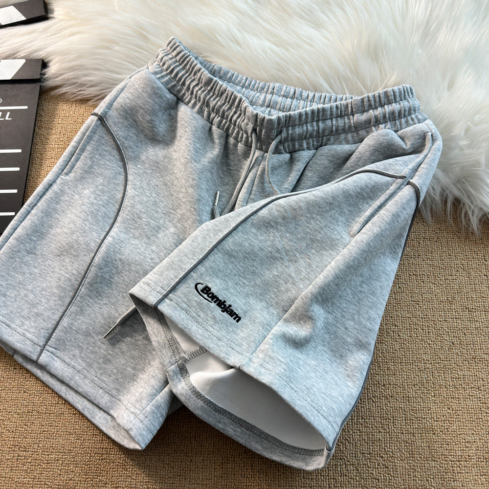 夏季新款短裤男美式刺绣字母运动跑步反光条休闲中裤四分裤子宽松