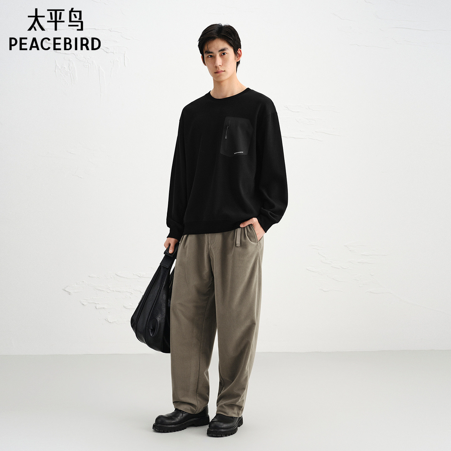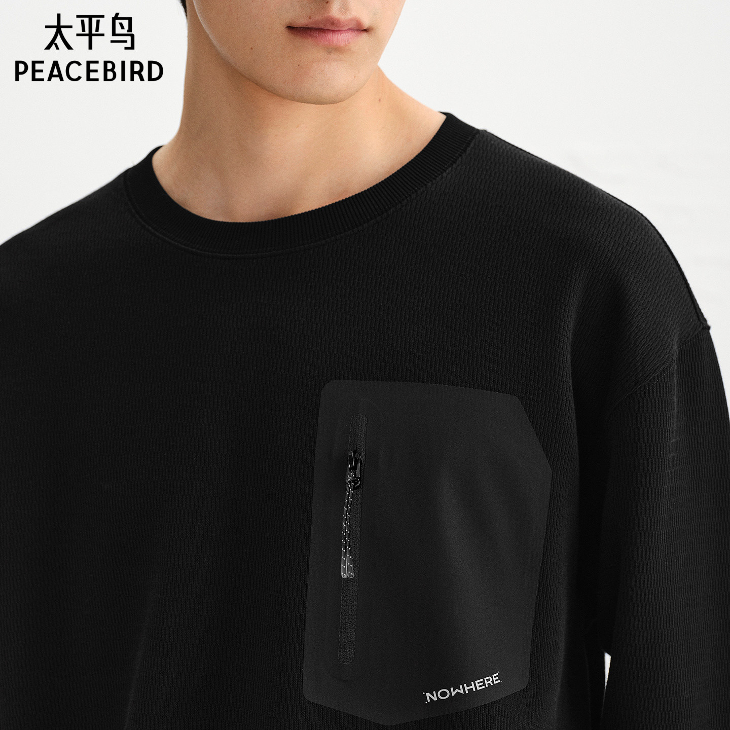 【商场同款】太平鸟男装 休闲卫衣工装重磅提花卫衣男 B2CRF3418