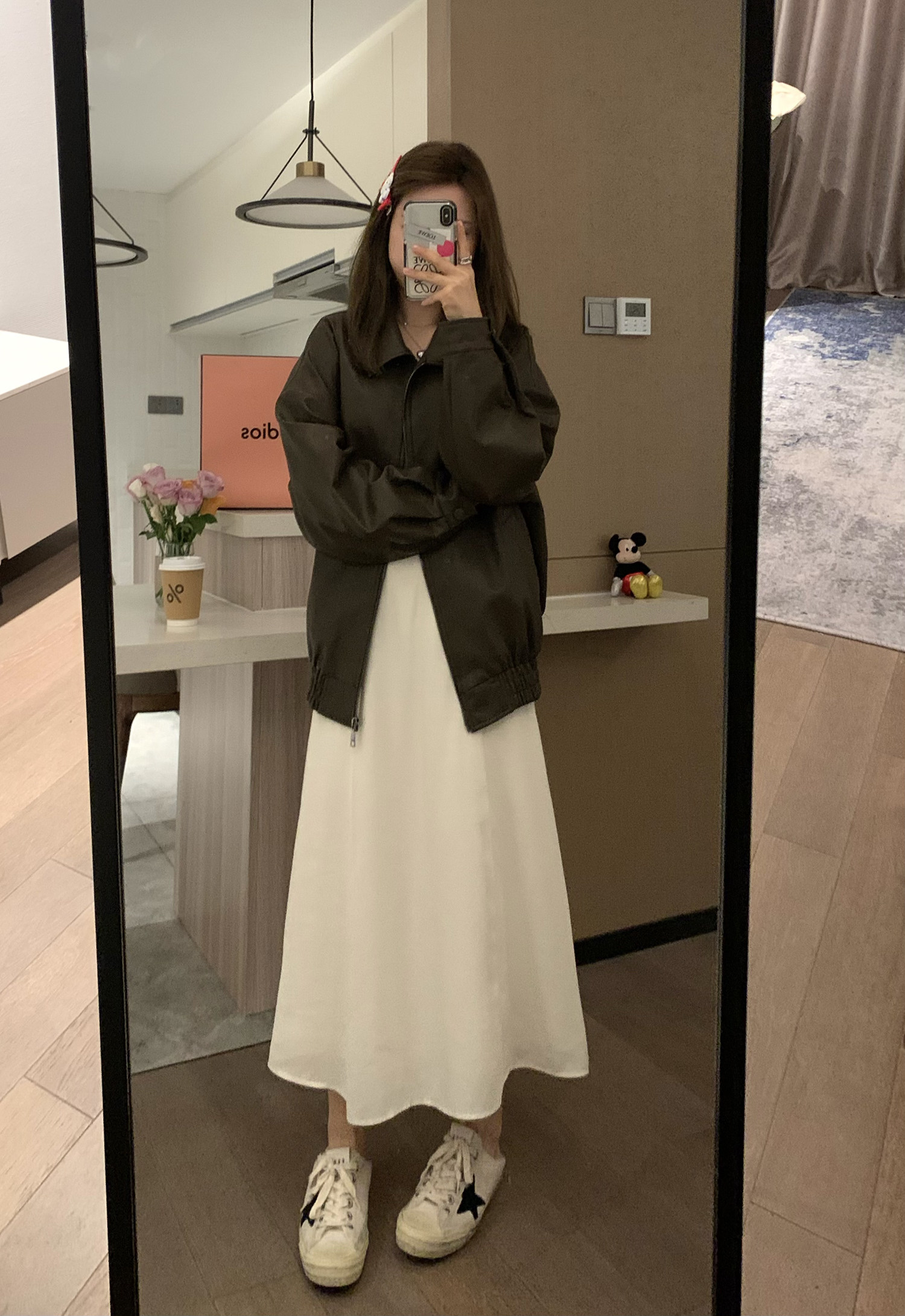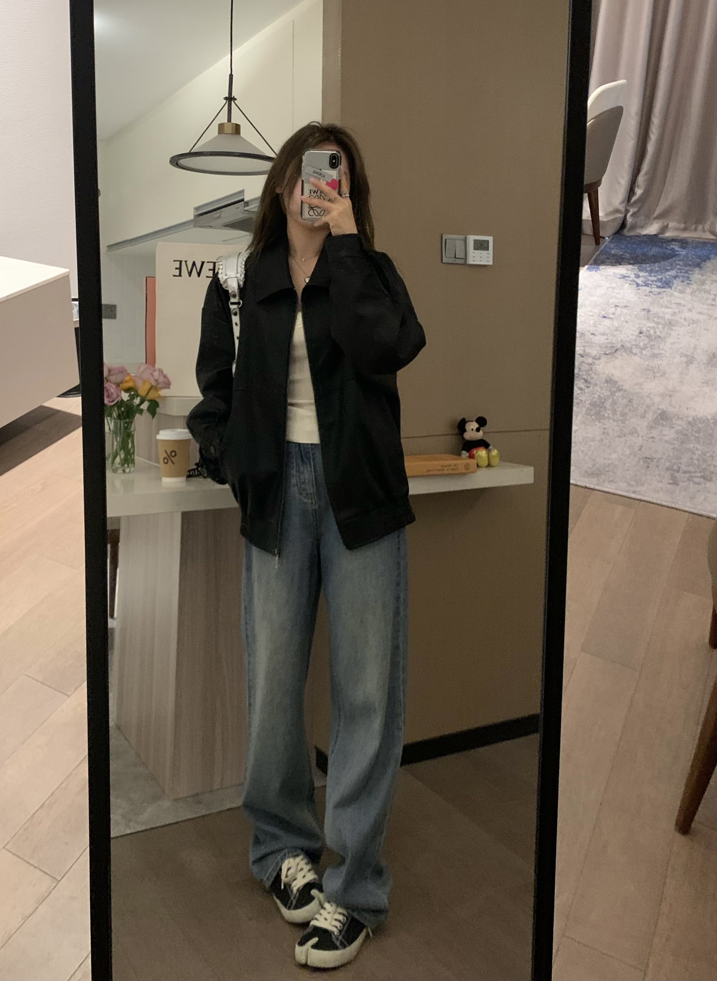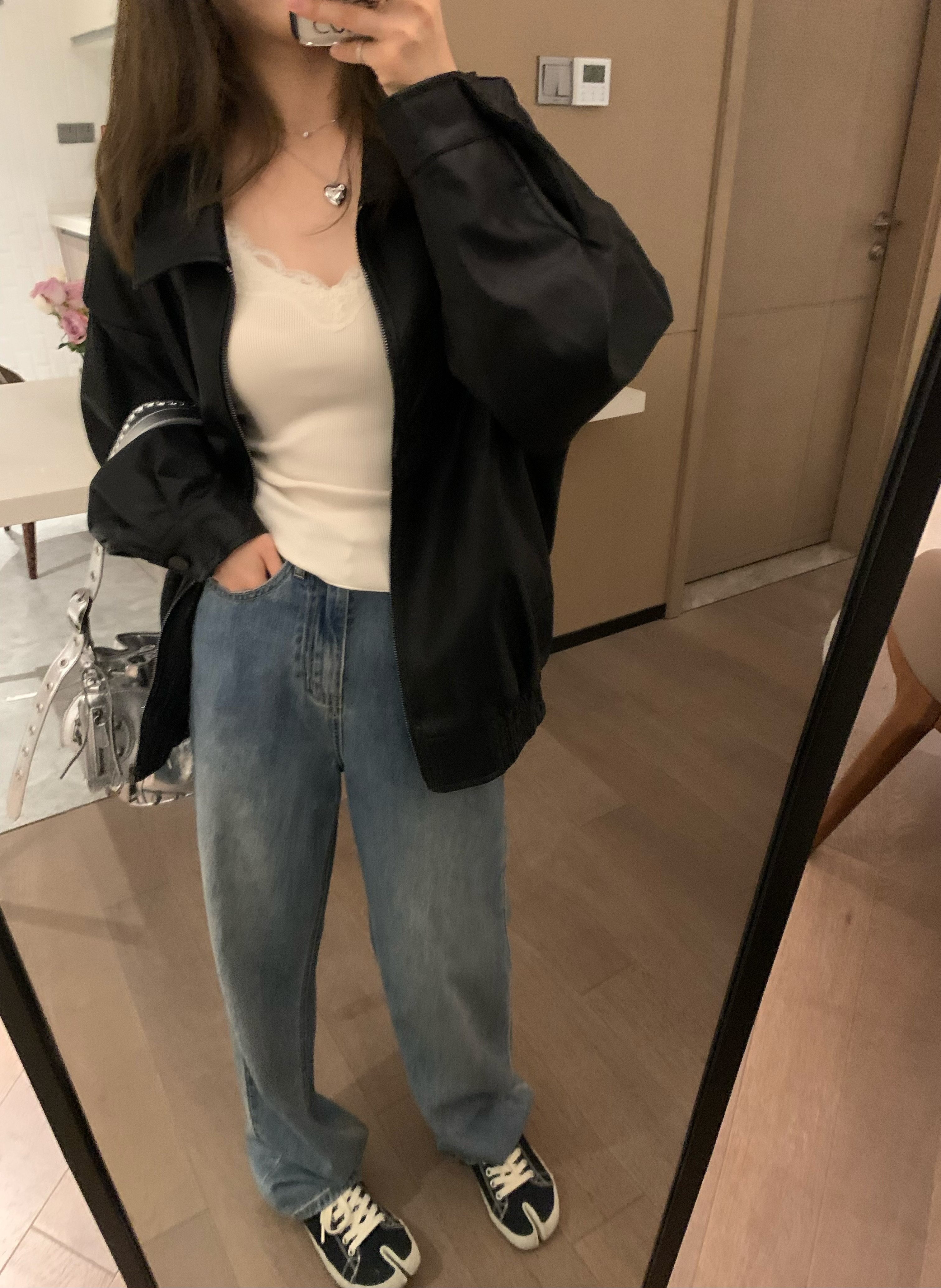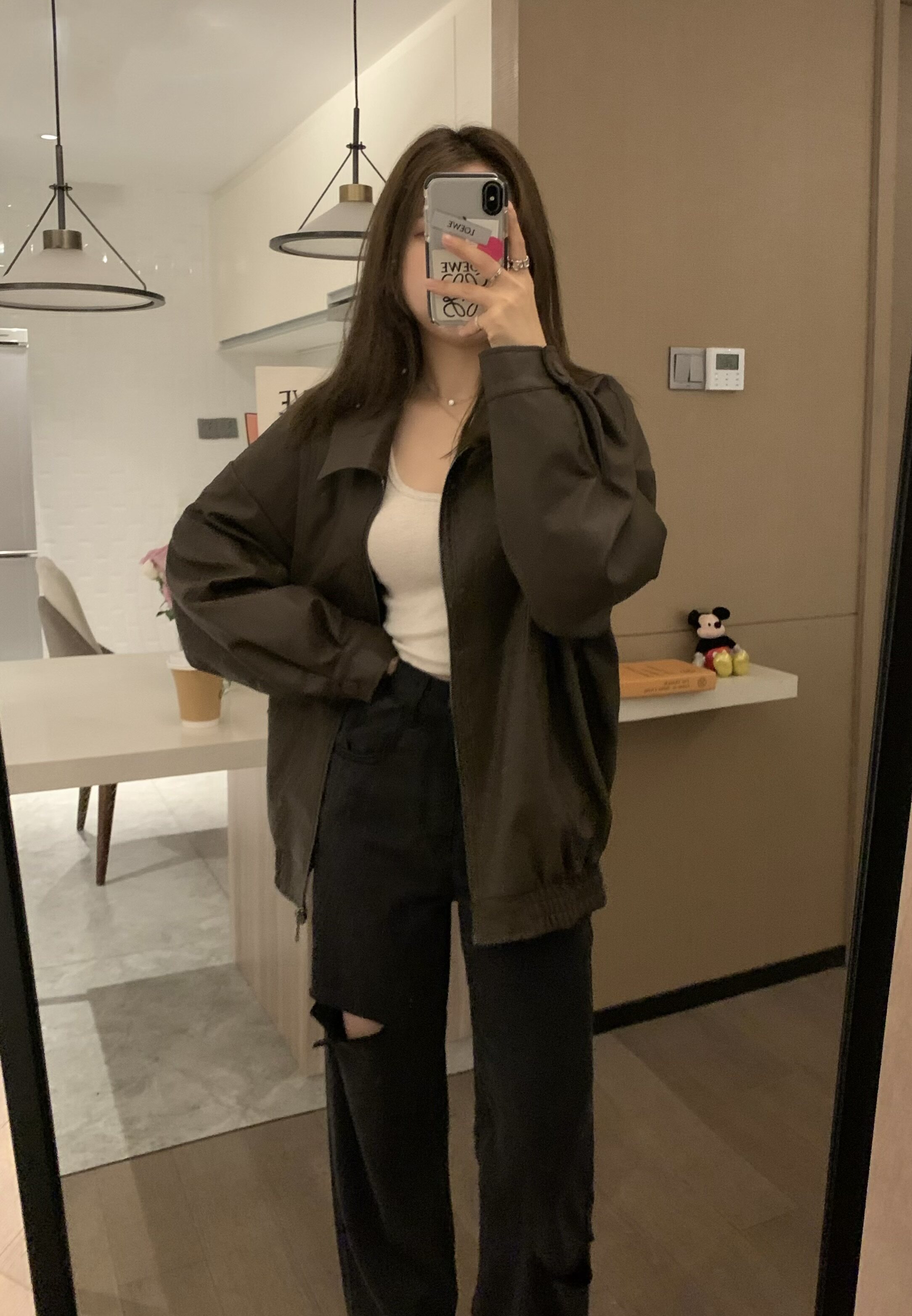 Veee黑曼巴 复古廓形宽松显瘦酷酷 黑色皮衣外套机车夹克休闲上衣