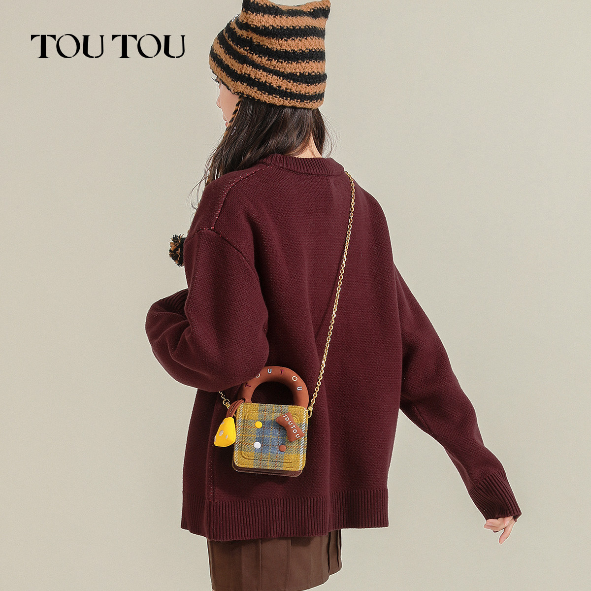 新年生日礼物TOUTOU毛呢格纹包迷你链条斜挎儿童送10岁女孩小包包