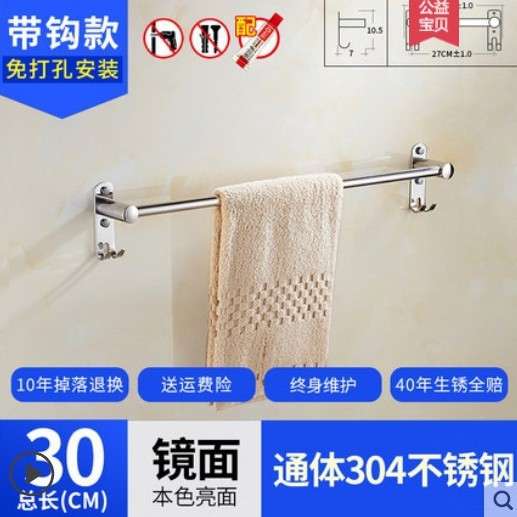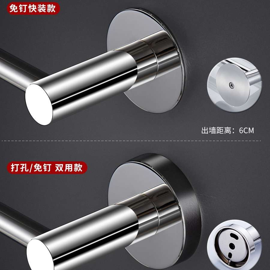 免打孔毛巾架挂杆304不锈钢毛巾杆单杆加长卫生间厕所浴室置物架