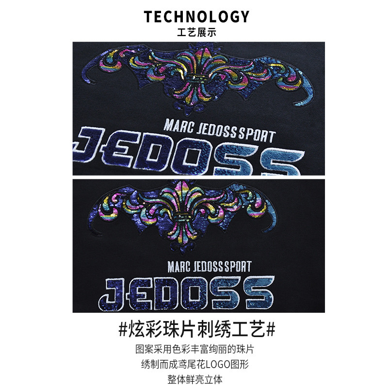 JEDOSS/爵迪斯男装秋冬新款经典炫彩LOGO珠片绣无帽卫衣160BS