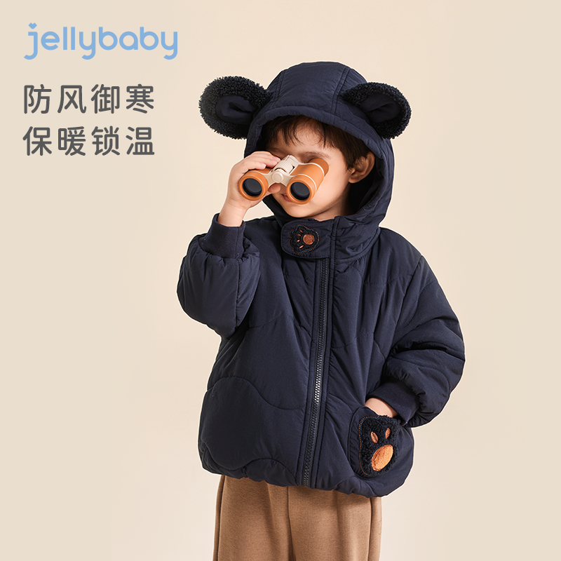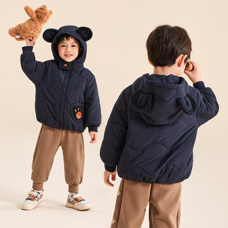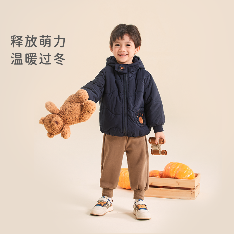 宝宝棉服校服神器儿童秋冬加绒加厚小童连帽防风衣服男童夹棉外套