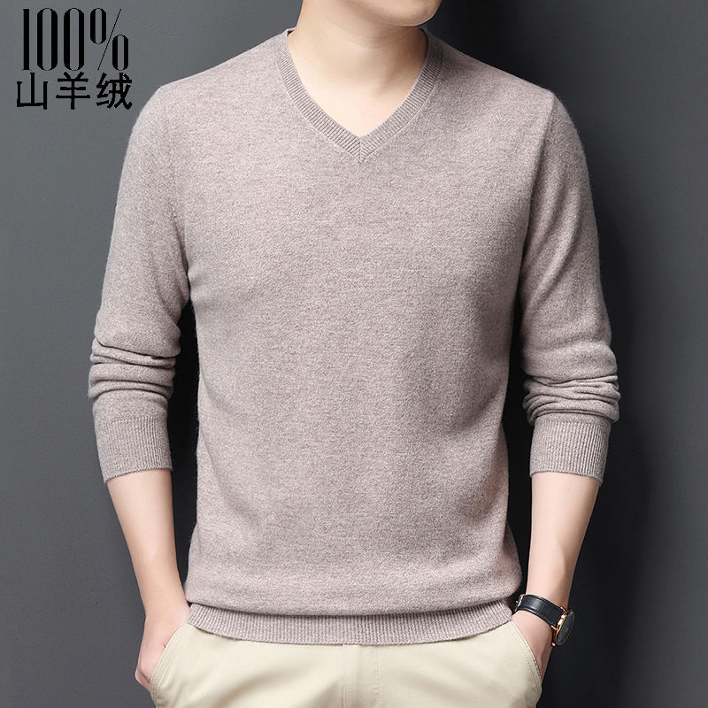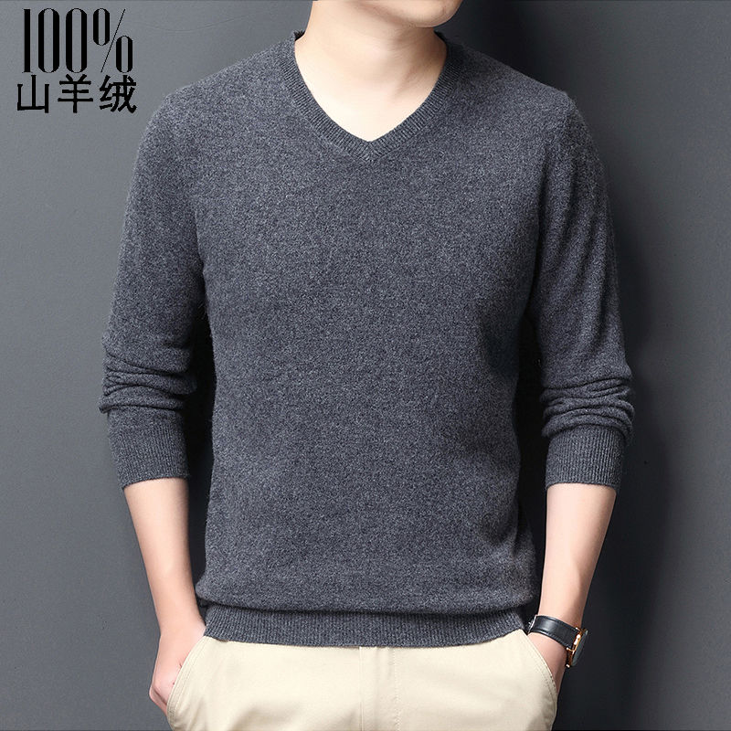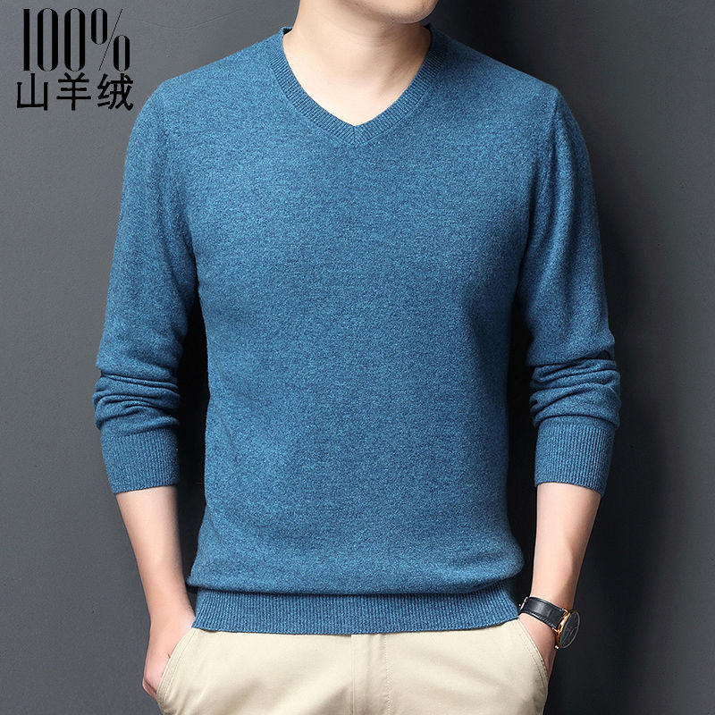 俞兆林男士高档羊绒衫v领加厚冬季纯色套头针织衫鸡心领羊毛衫男