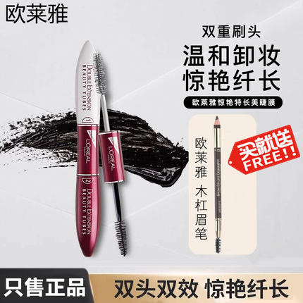 正品欧莱雅惊艳特长美睫膜双头睫毛膏带打底纤长卷翘浓密不晕染