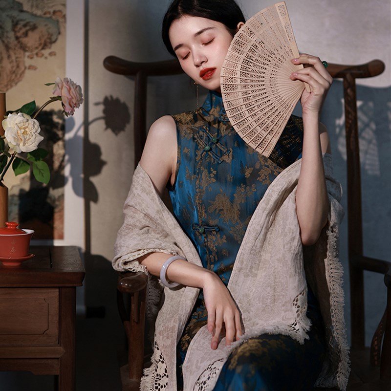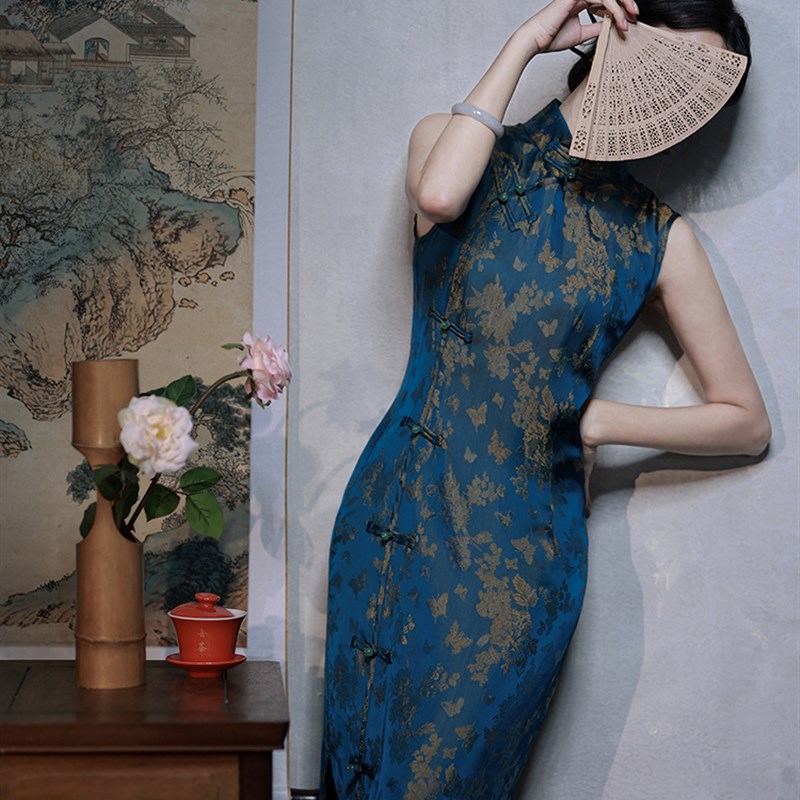 枕梦村庄 冷香 新中式国风改良复古提花收腰无袖高级感旗袍连衣裙