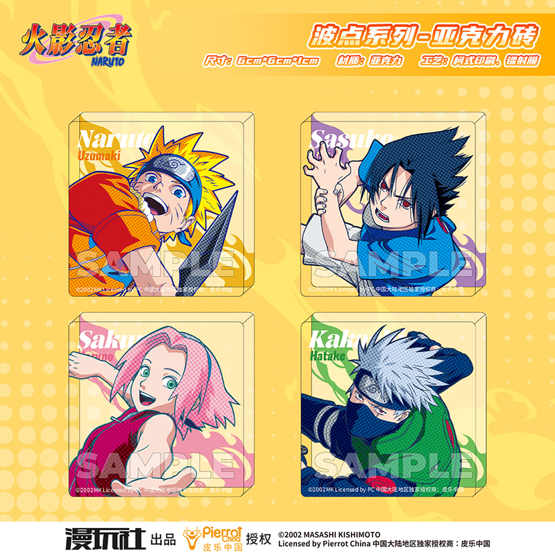 漫玩社 火影忍者 波点系列 鸣人佐助 徽章拍立得盲盒亚克力砖周边