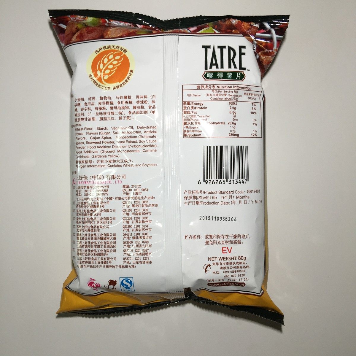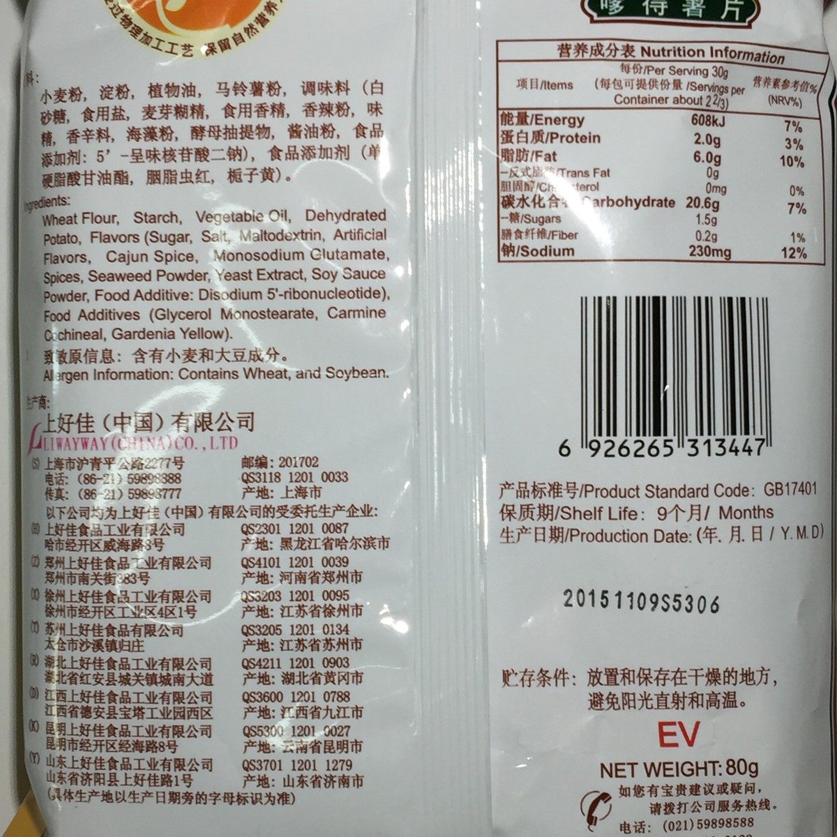 上好佳嗲得薯片80克*12袋 40克*20袋