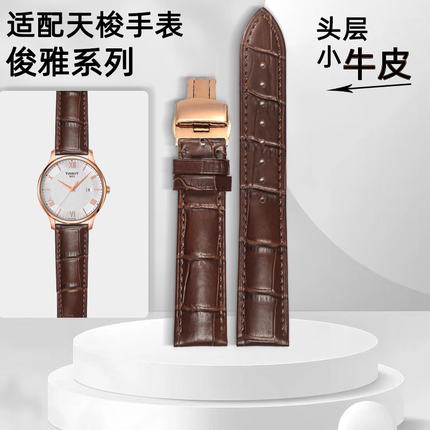 定制软真皮表链牛皮手表带适用原装Tissot天梭乐爱小方表男士女款