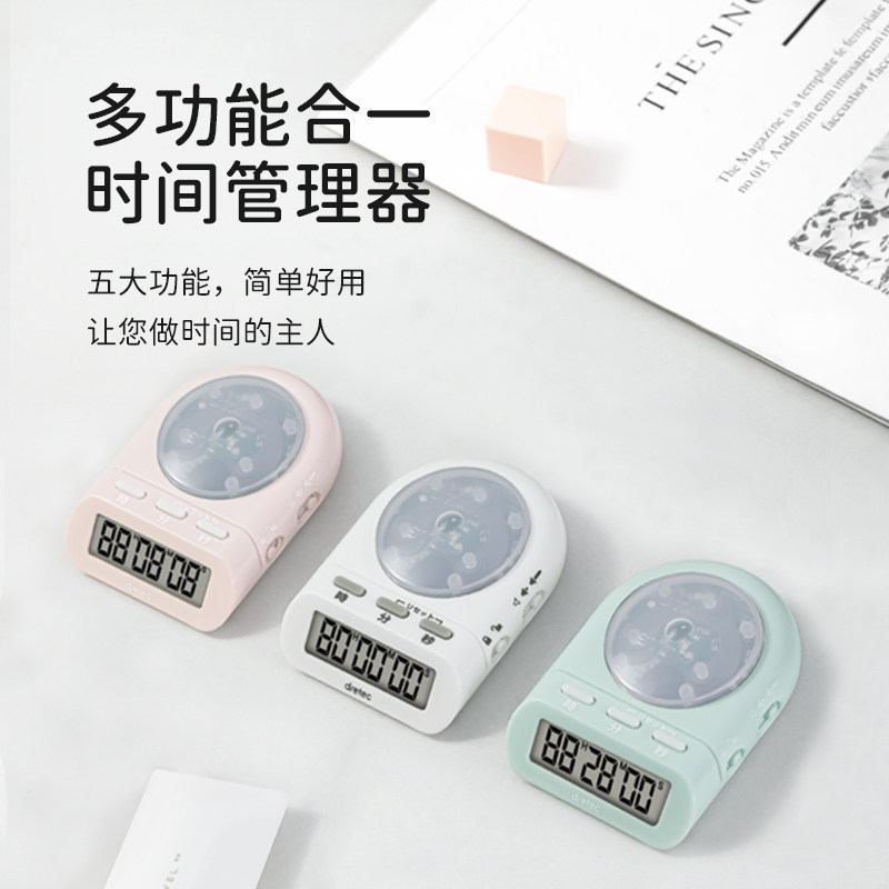日本多利科学生考研静音计时器带时钟显示正倒定时器学习提醒器