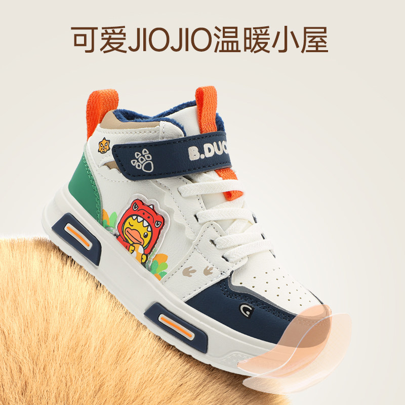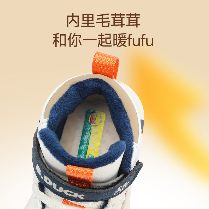 B.Duck小黄鸭童鞋男童板鞋高帮冬季新款儿童鞋子小童棉鞋加绒二棉
