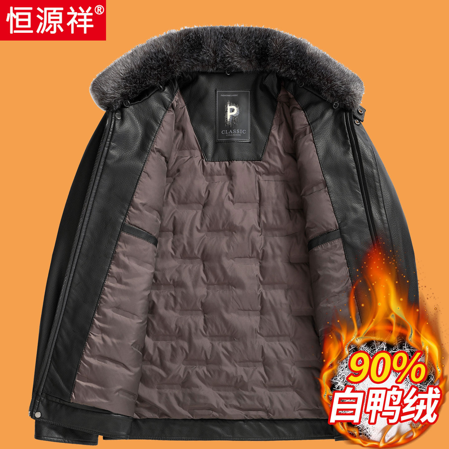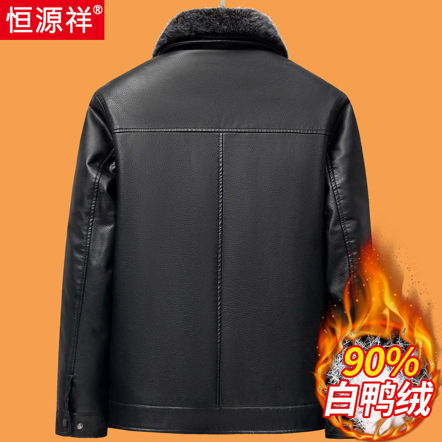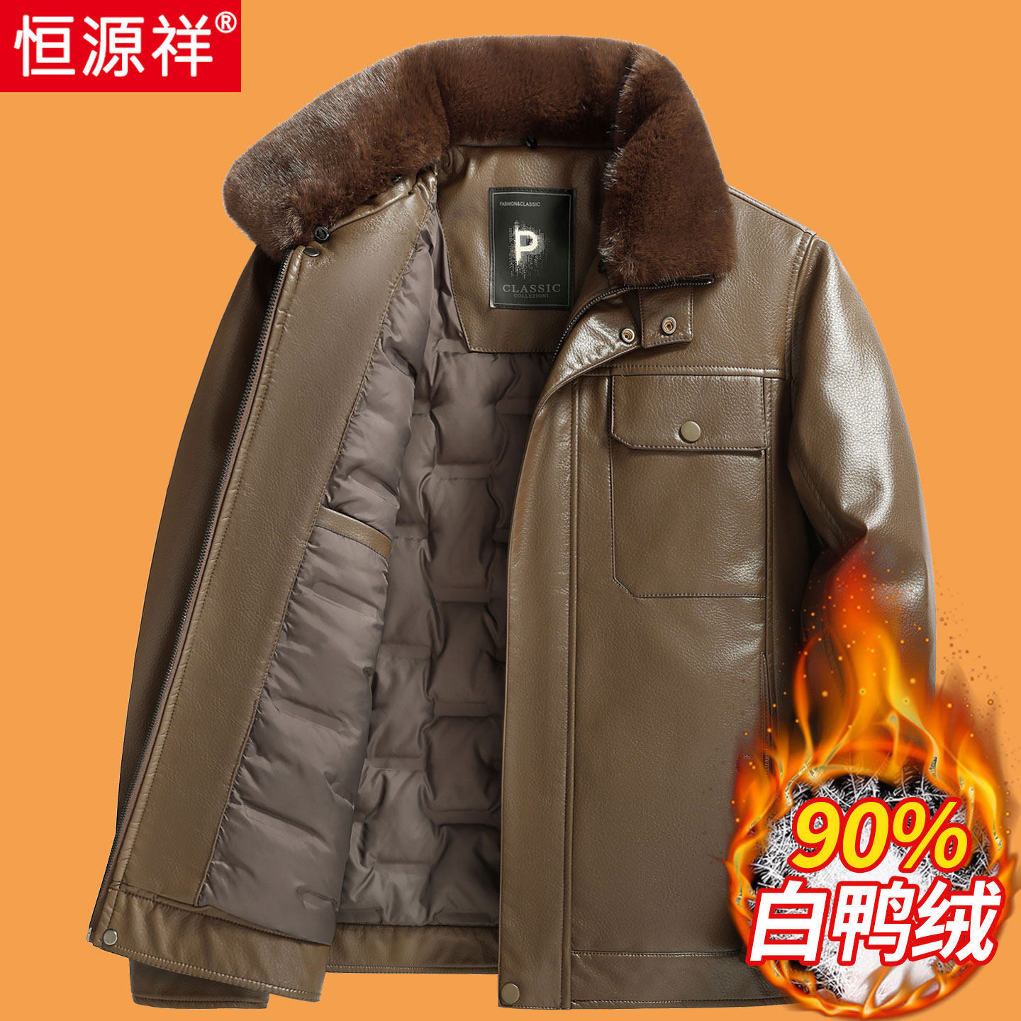 恒源祥中老年羽绒服男士冬季加厚90白鸭绒皮衣爸爸冬装外套皮夹克