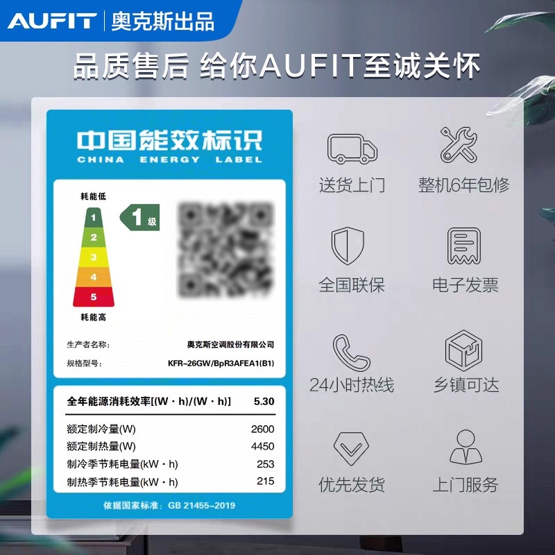 AUFIT空调奥克斯出品大1.5匹挂机一级能WiFi智控卧室专用