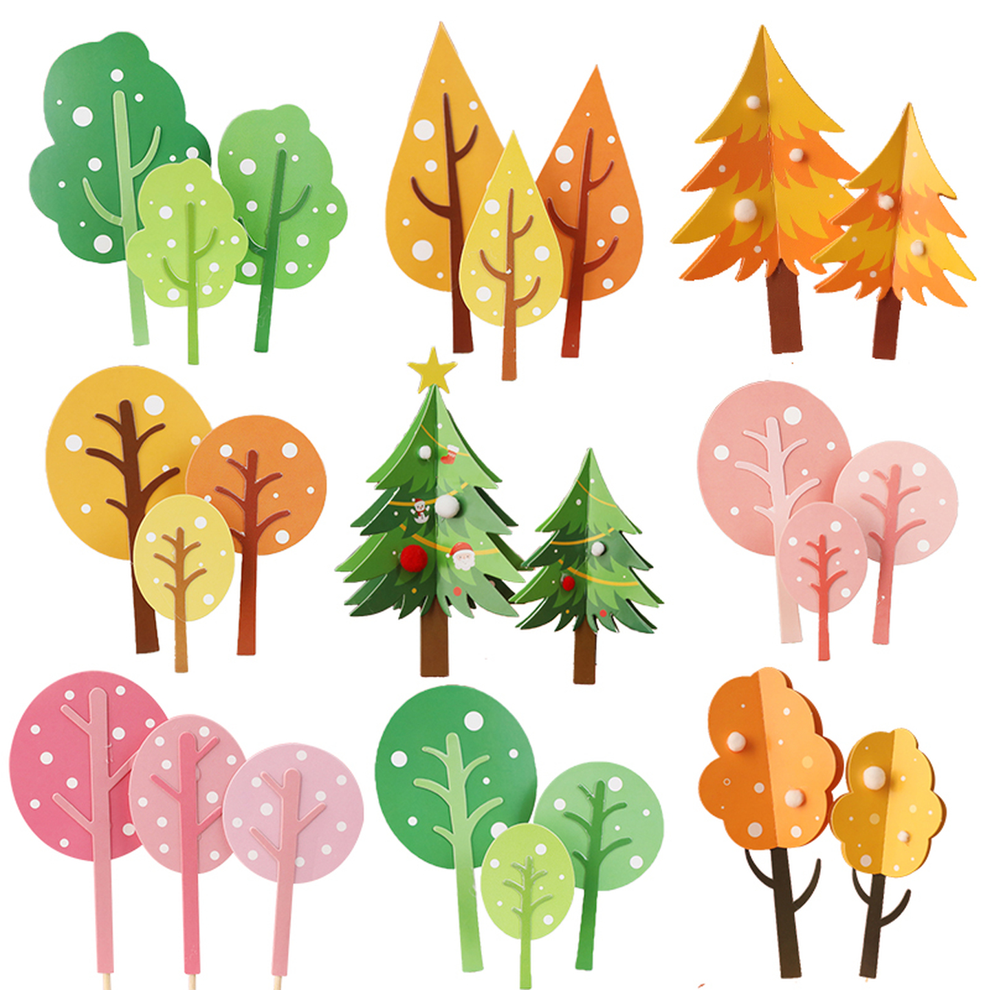 烘焙蛋糕装饰摆件网红森林小树苹果树松树椰子树生日插牌插件合集