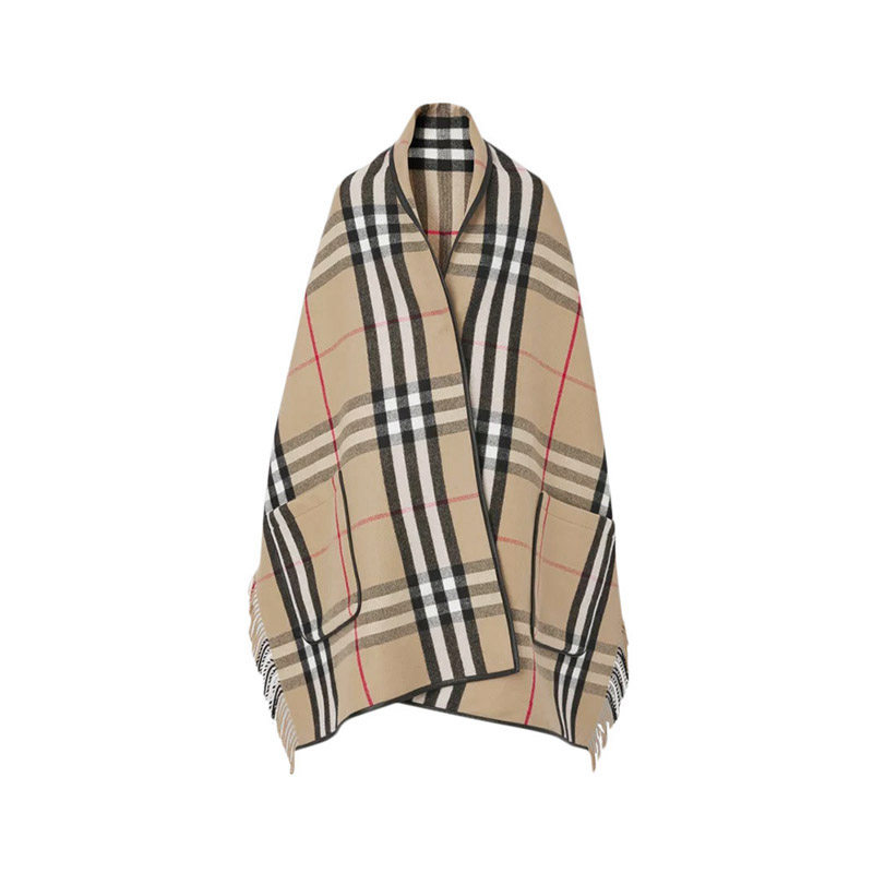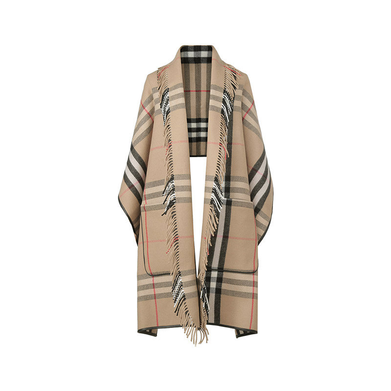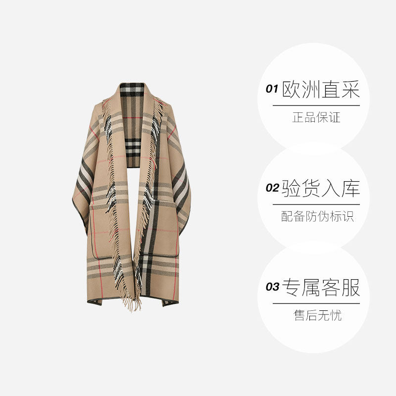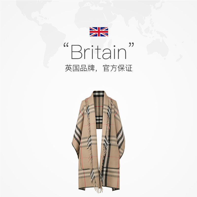 【自营】博柏利 BURBERRY 女款绵羊毛流苏披肩 80496921羊绒格子