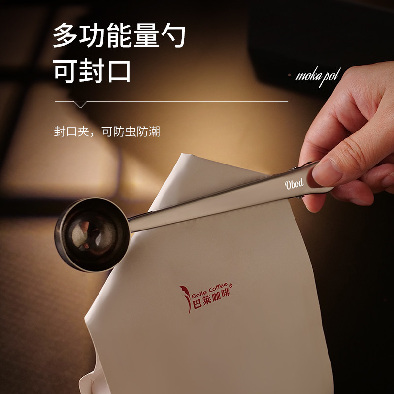 Obod不锈钢咖啡豆量勺豆勺奶粉定量勺克数勺多功能零食封口夹子