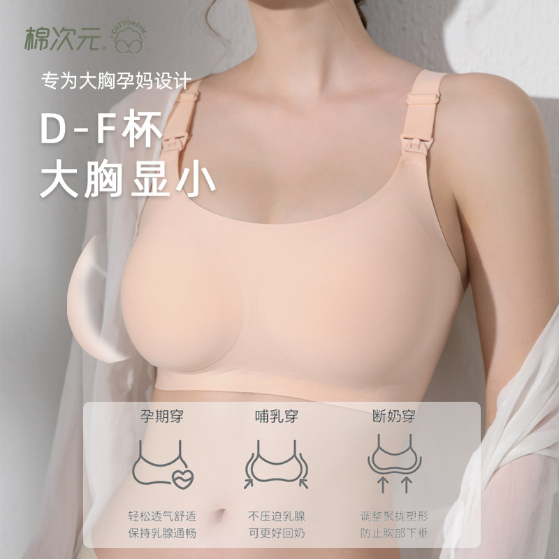 棉次元大胸哺乳内衣全罩杯孕妇文胸怀孕期聚拢防下垂产后喂奶专用