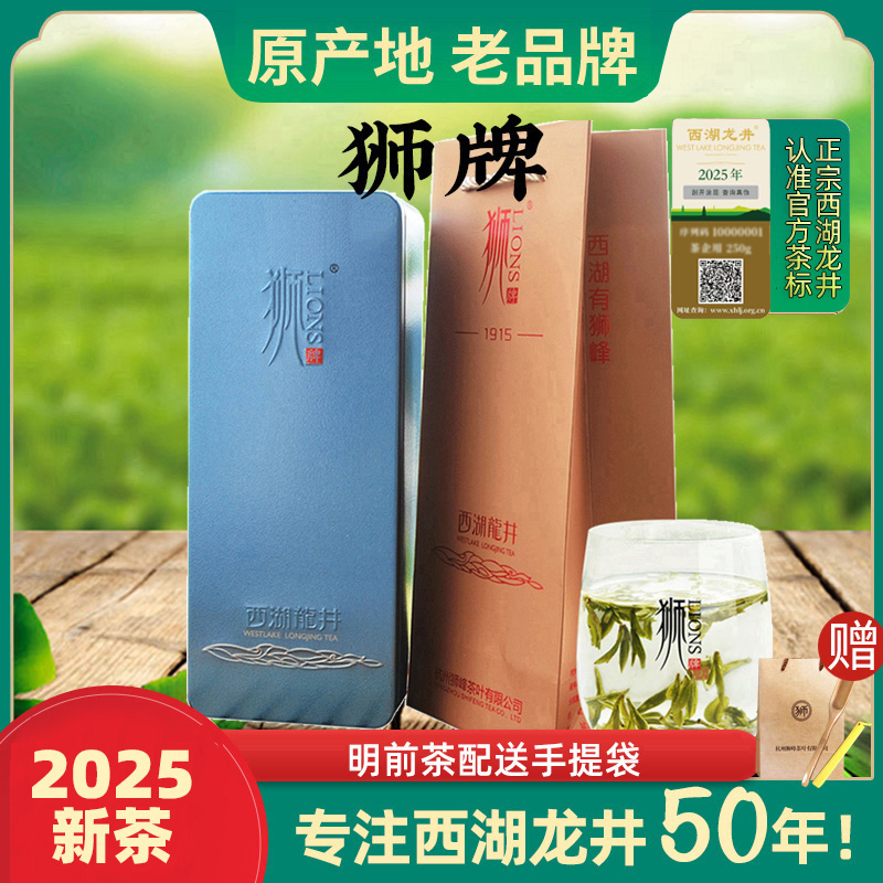 2025新茶上市 狮牌西湖龙井茶杭州明前100克 狮峰龙井 绿茶包邮