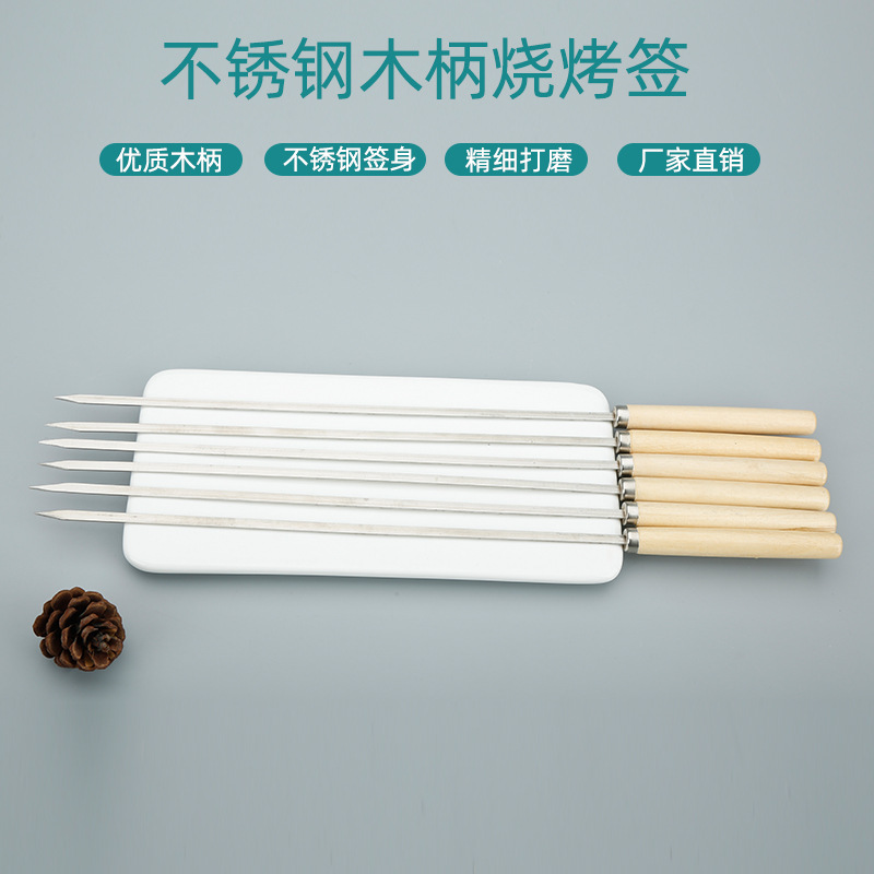 烧烤签子木柄不锈钢扁签烧烤用具烤针羊肉串铁签子钢签烤肉签串针