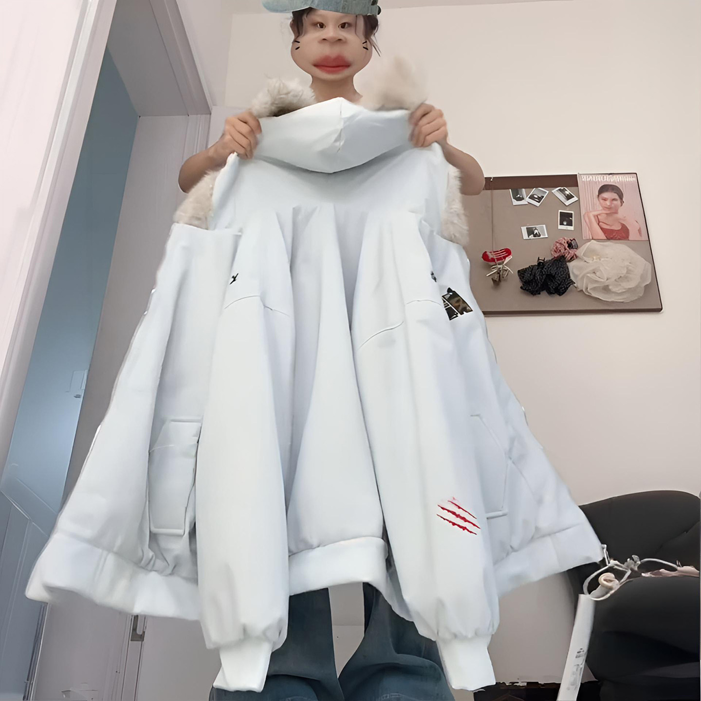 300斤大码女装慵懒风猫耳朵棉服女胖mm韩系宽松加厚保暖连帽外套