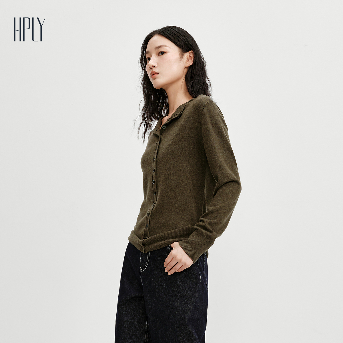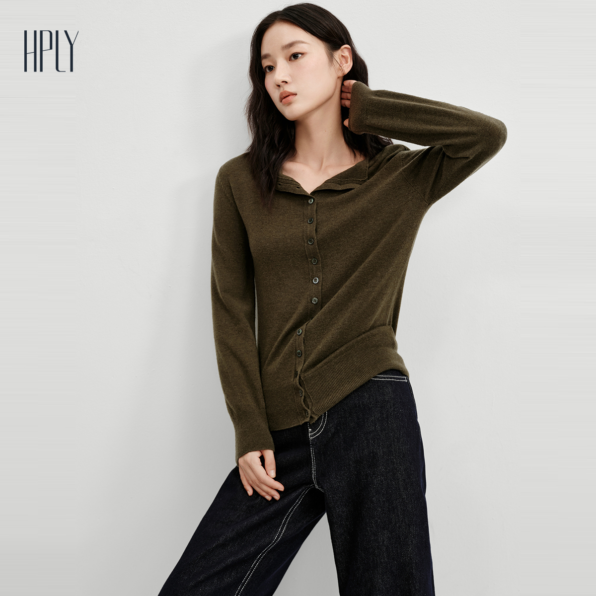 【商场同款】HPLY荷比俪2025冬新款女绵羊毛山羊绒混纺圆领羊毛衫