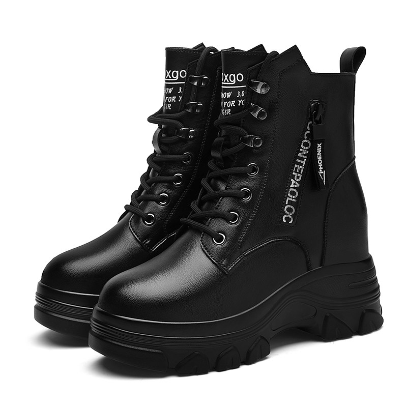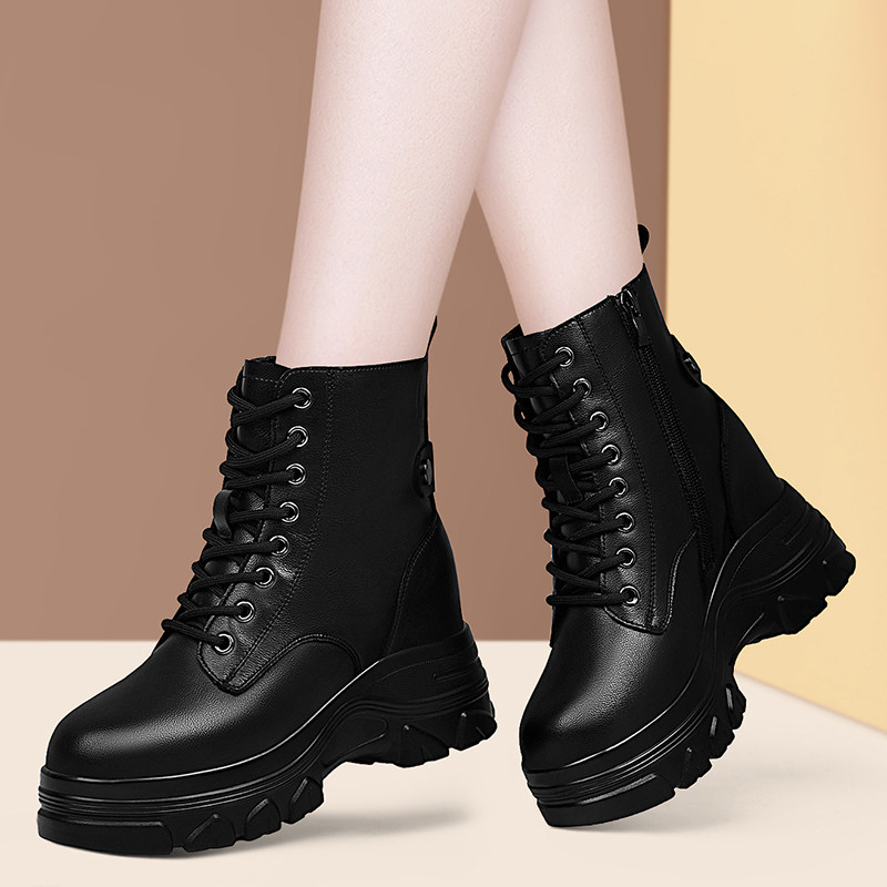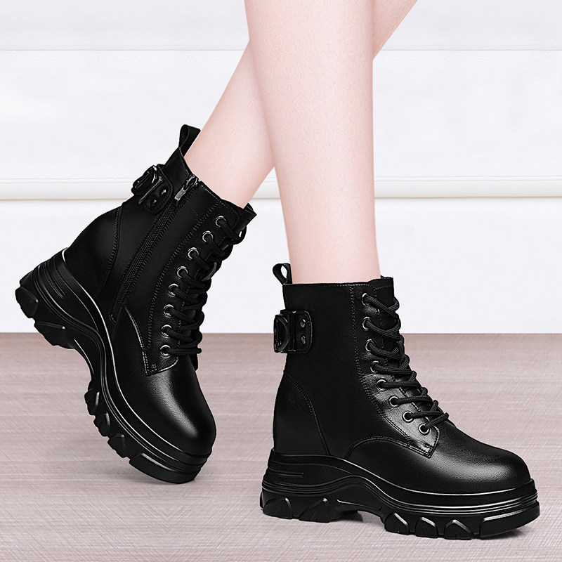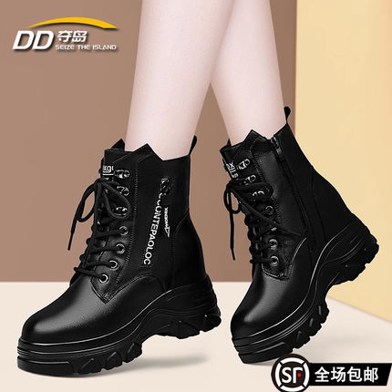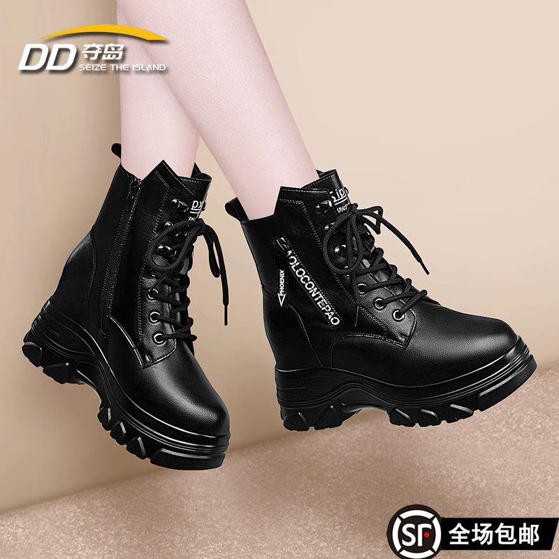 内增高马丁靴女小个子2025新款厚底春秋单靴冬季加绒靴子真皮短靴