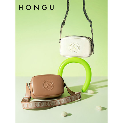 红谷女包2023新款时尚潮流女士相机包牛皮休闲宽肩带斜挎包女5205