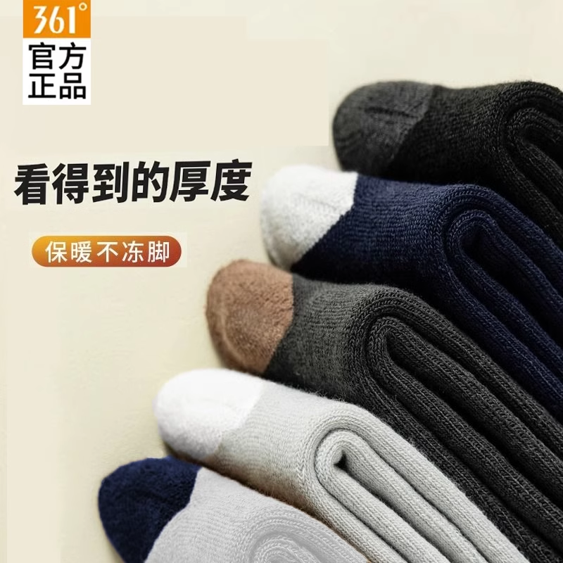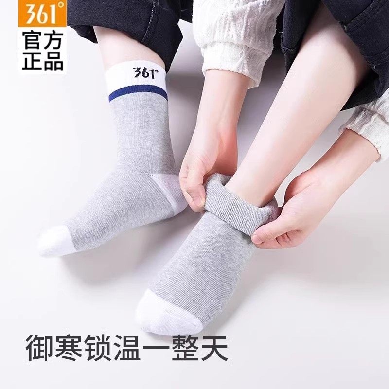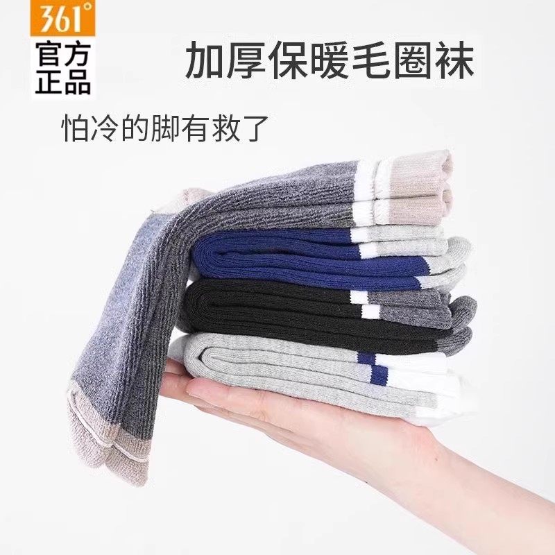 361男袜官方正品秋冬男士休闲长袜加绒保暖毛圈长筒袜运动袜子男