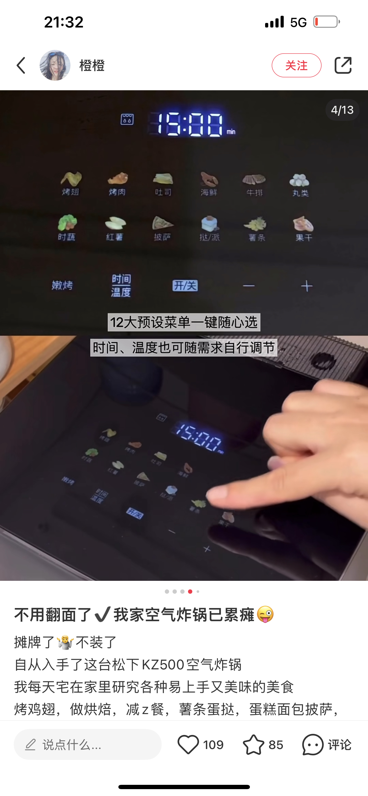 松下热循环多功能可视自动无油5L大容量无需翻面空气炸锅NF-KZ500