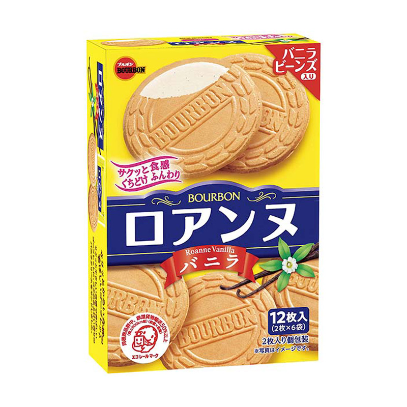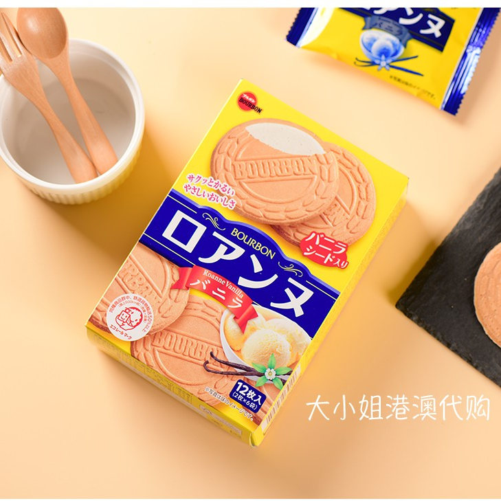 日本进口bourbon布尔本香草味夹心饼干法式圆饼薄脆曲奇零食点心