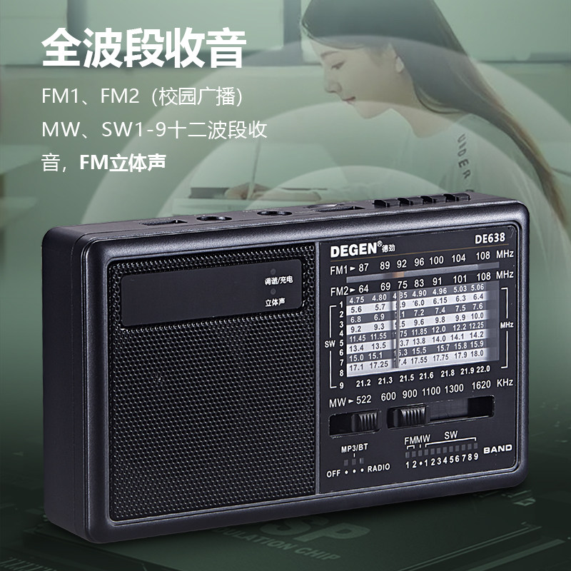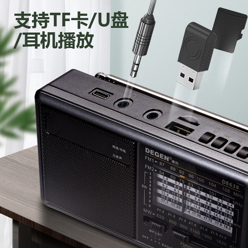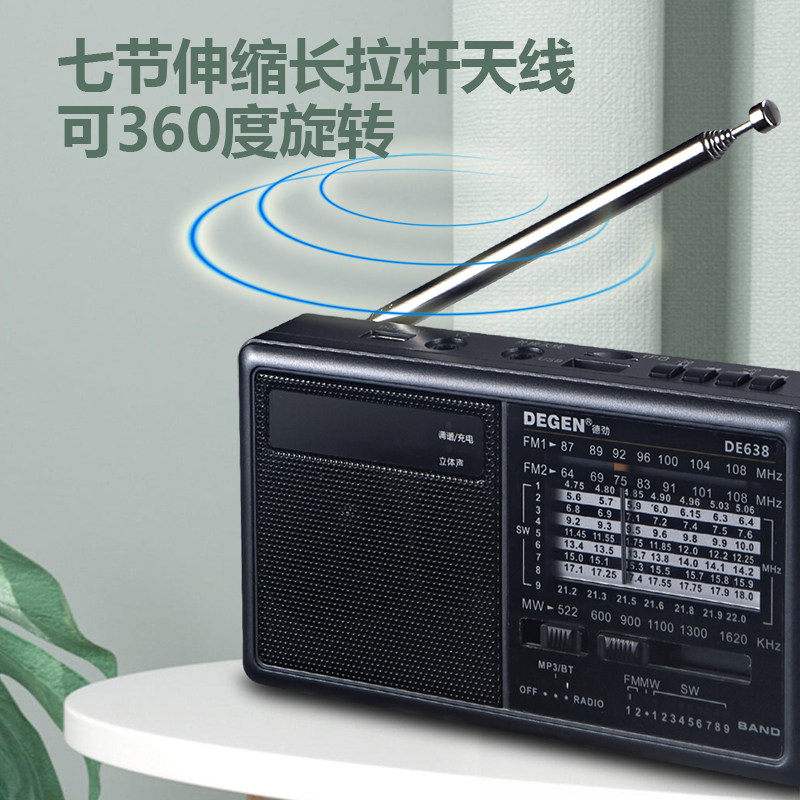德劲DE638高端新款便携无损蓝牙插卡u盘发烧音响全波段收音机