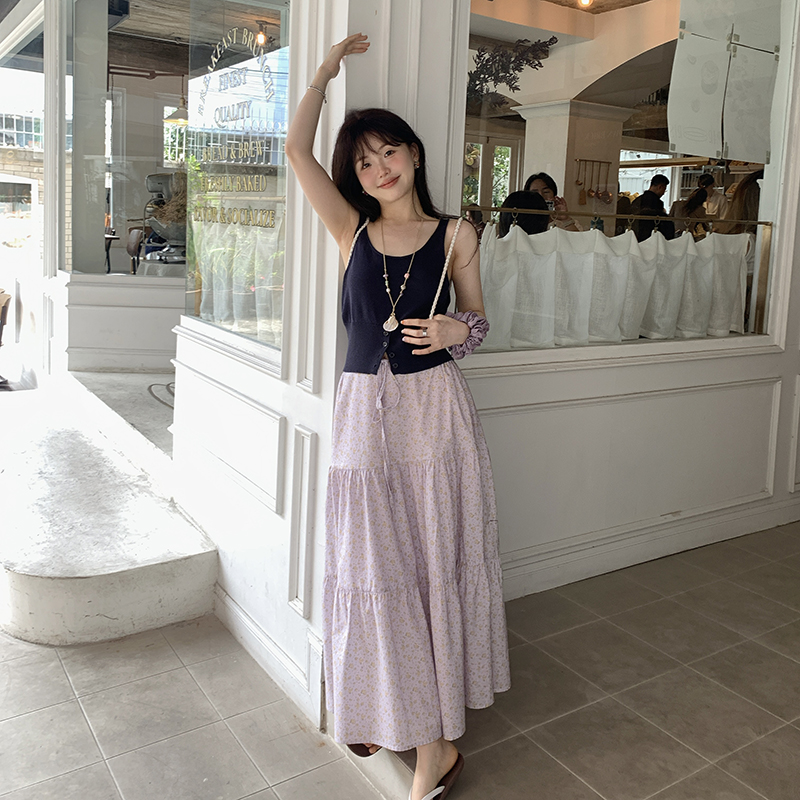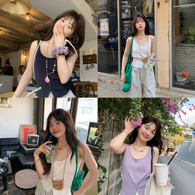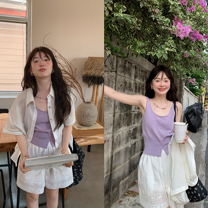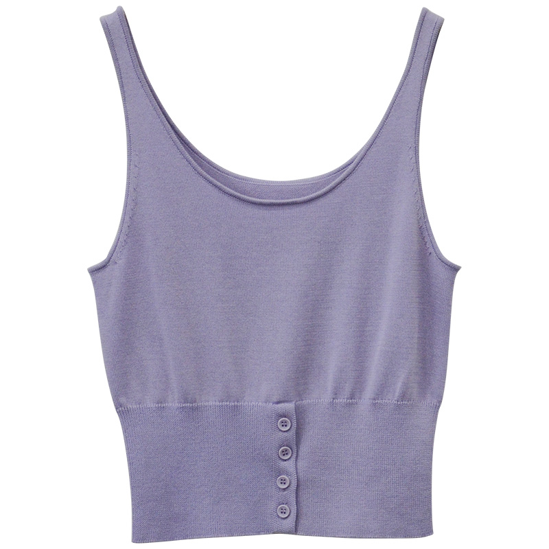 一三良品小个子 收腰纽扣白色针织吊带上衣背心女夏无袖外穿内搭