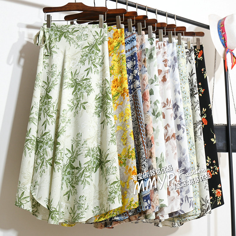 国风雪纺碎花一片式系带半身裙绑带女夏季2025新款裙子裹裙半裙夏