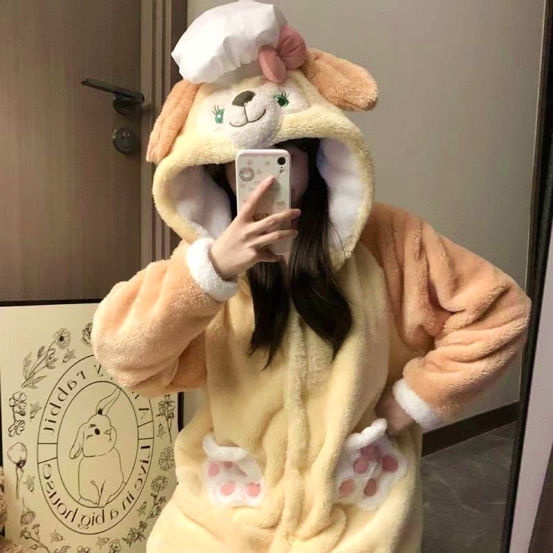 黄油饼饼珊瑚绒睡衣秋冬款女2025新款冬季厚睡裙厨师狗睡袍家居服