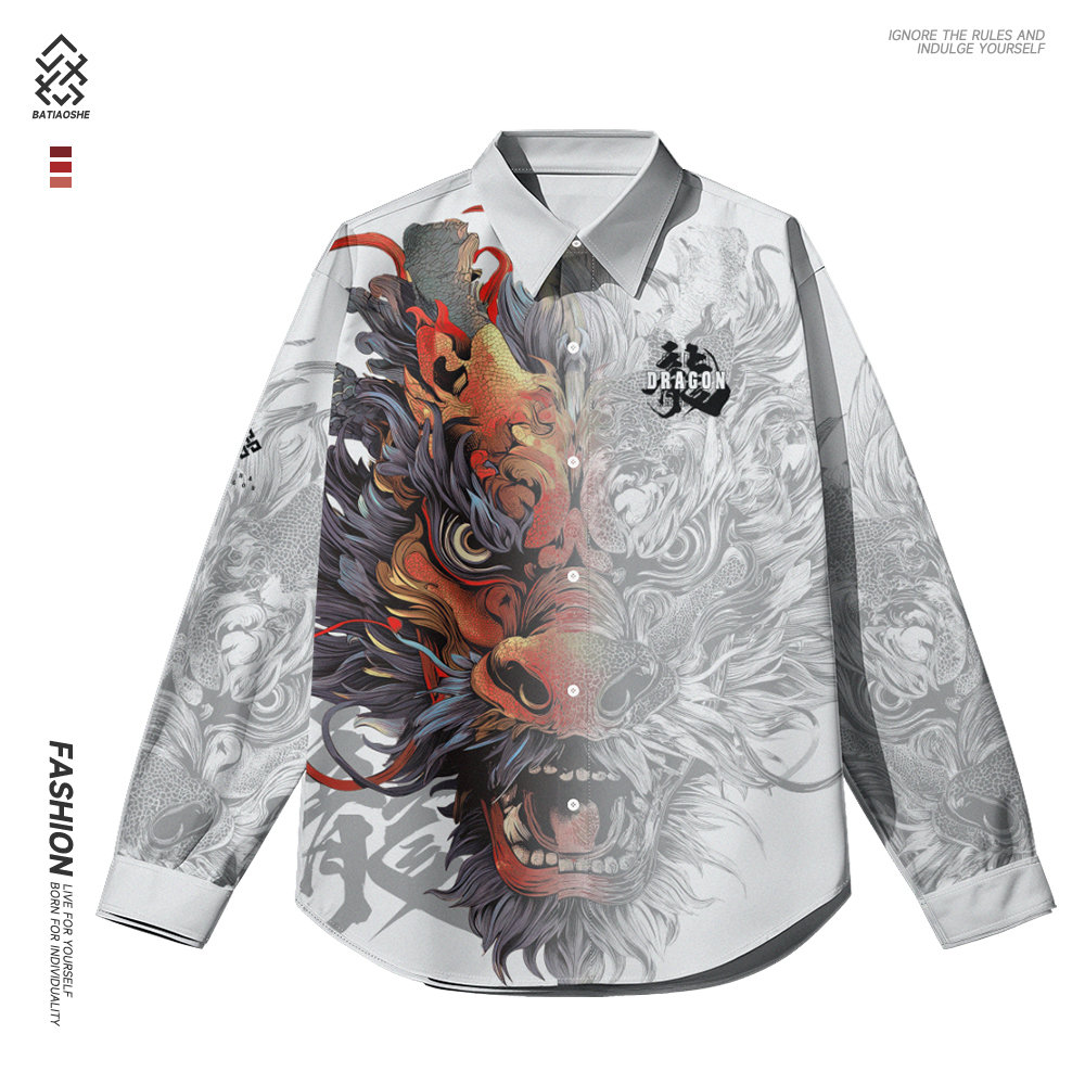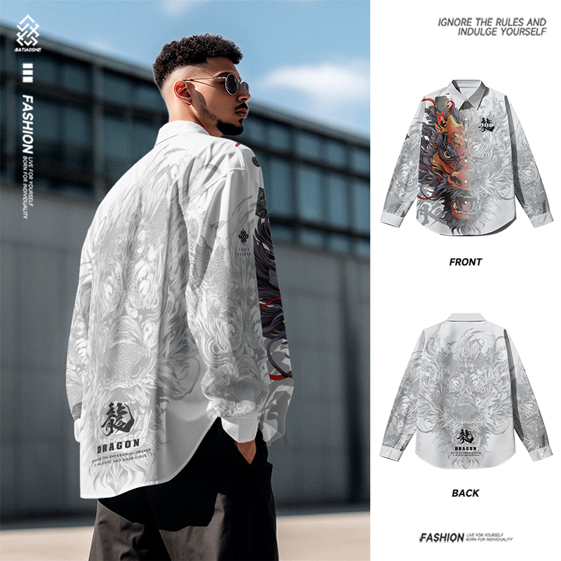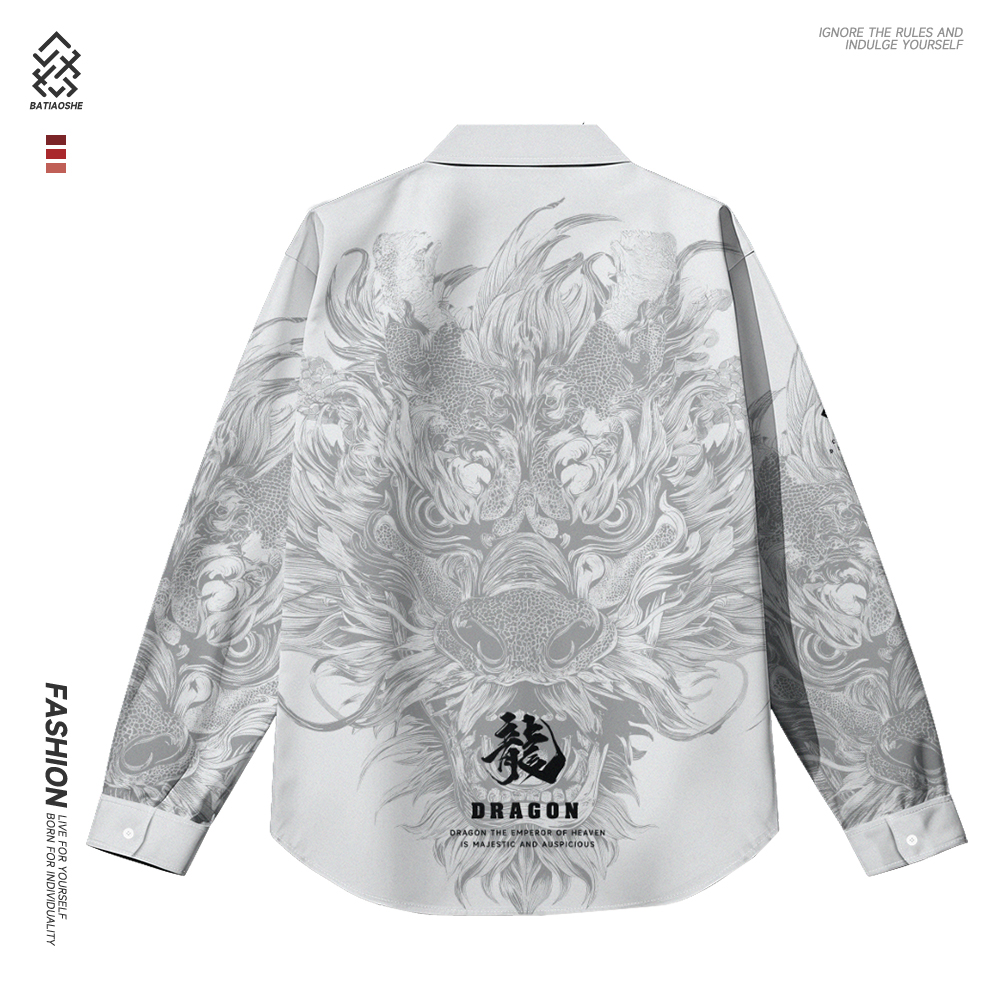 国潮龙年白色长袖衬衫男女同款2024新年款本命年休闲高级宽松上衣