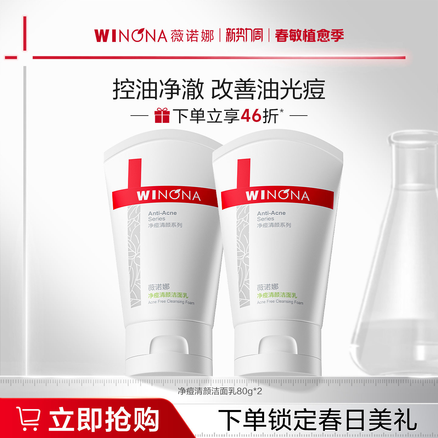 薇诺娜净痘清颜洁面乳控油祛痘温和深层清洁泡沫清爽补水洗面奶