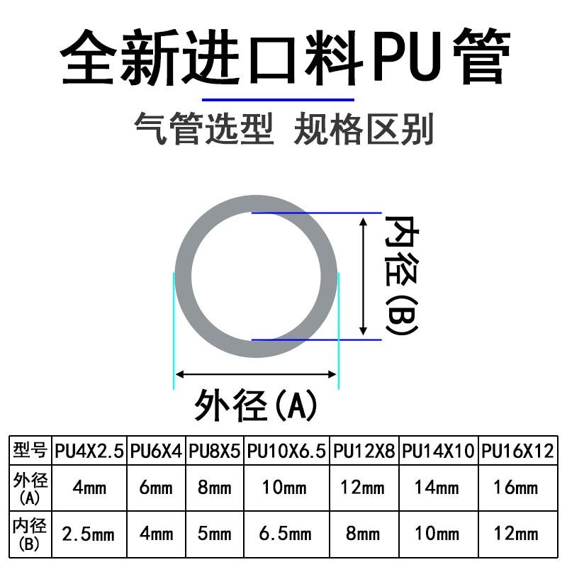 气动PU气管空压机管气泵气管耐高压软管12X8mm快速接头气钉枪风管