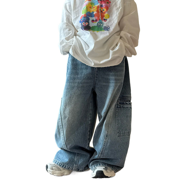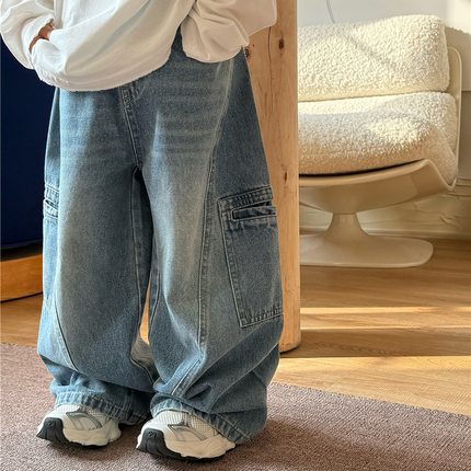 2025春夏款童裤中大童牛仔长裤韩版潮款工装男女童洋气牛仔裤子