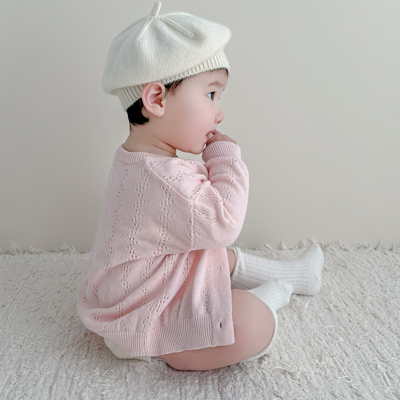 宝宝春夏薄款婴儿衣服网眼针织长袖小开衫外套婴幼儿小披肩上衣