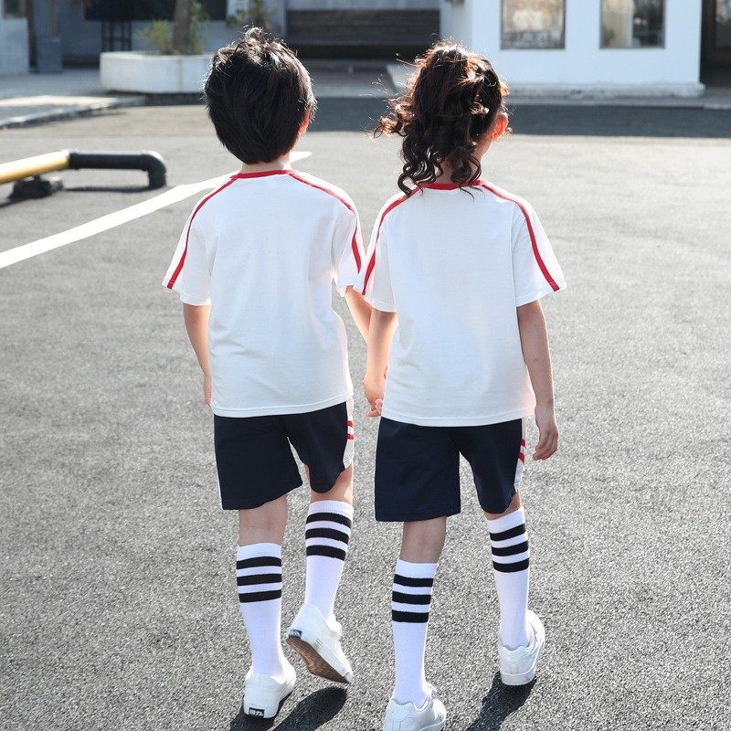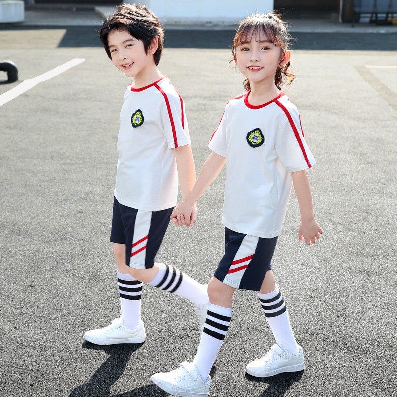 小学生校服夏装套头短袖套装棉班服毕业服白色夏季幼儿园园服圆领