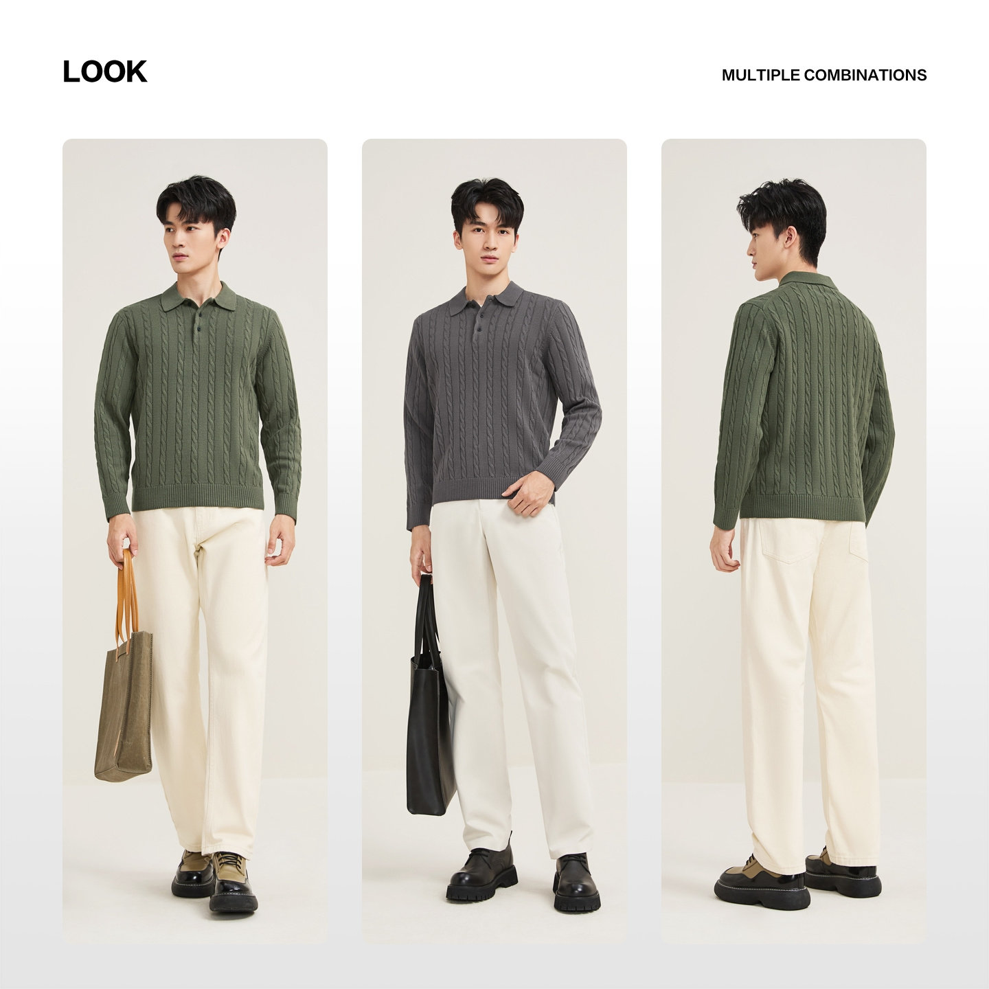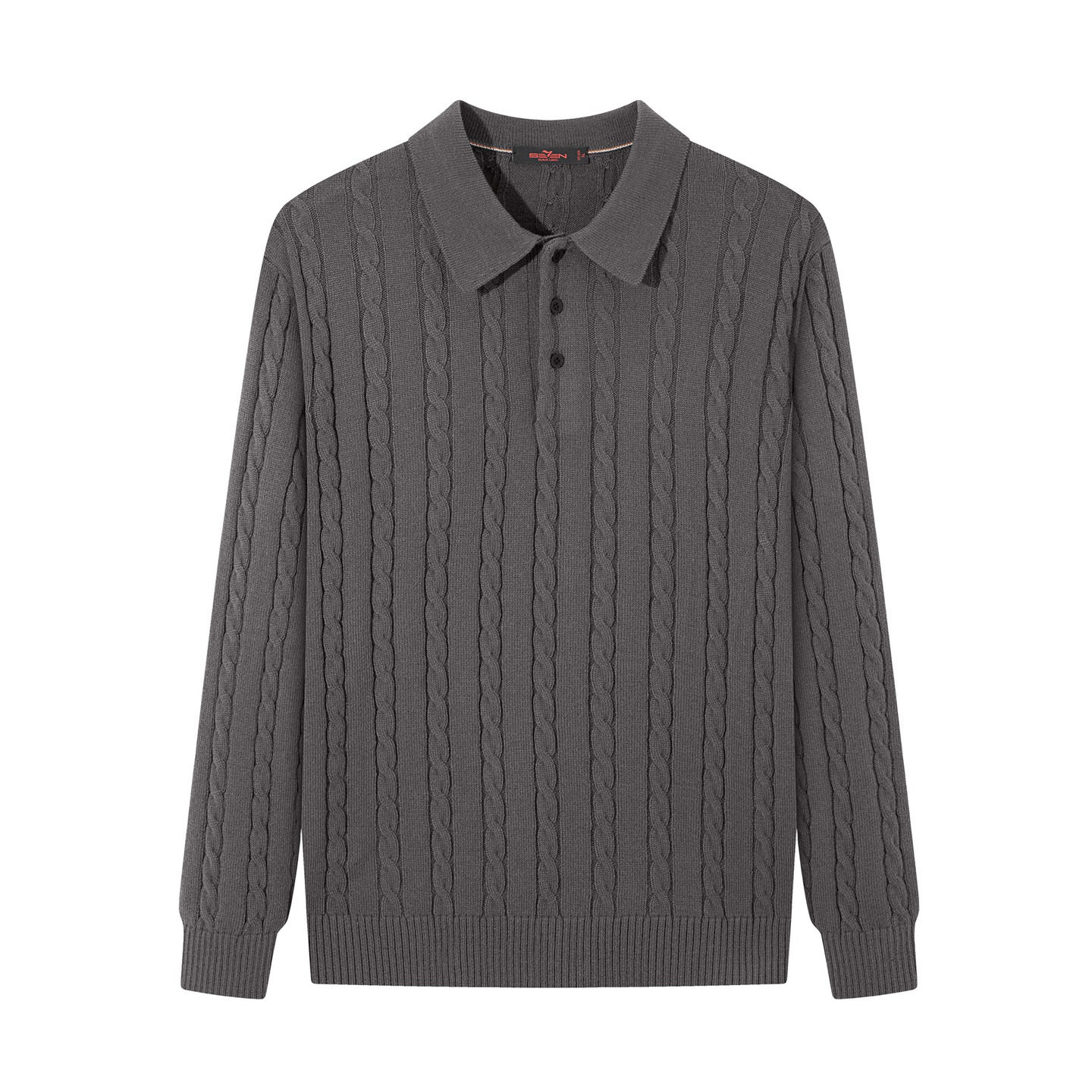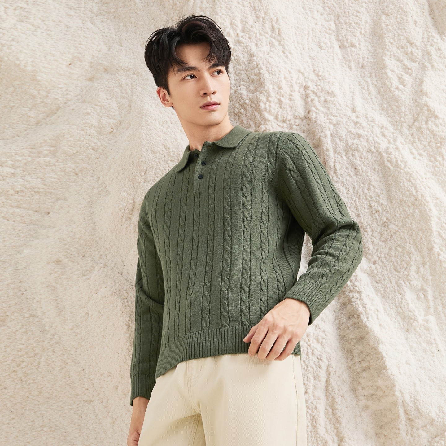 【7A抗菌/含羊毛/绞花】柒牌套头毛衫2025秋冬翻领中青年休闲上衣