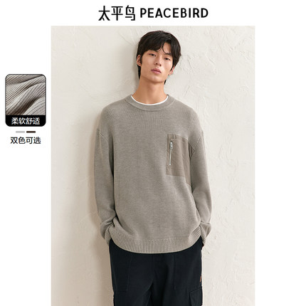 【糯米绒】太平鸟男装 休闲毛衣24冬新款时尚工装针织衫男士毛衫