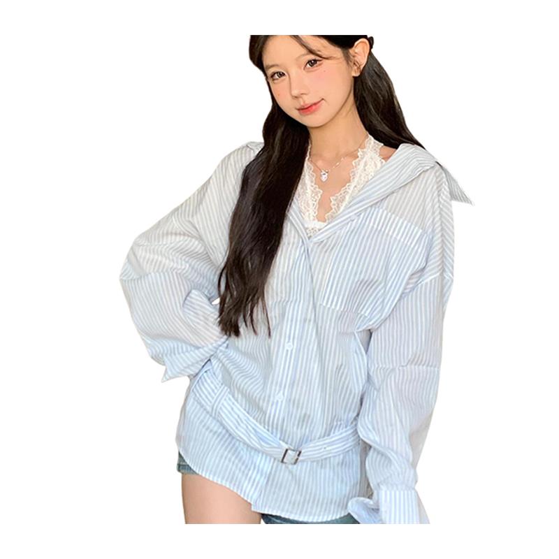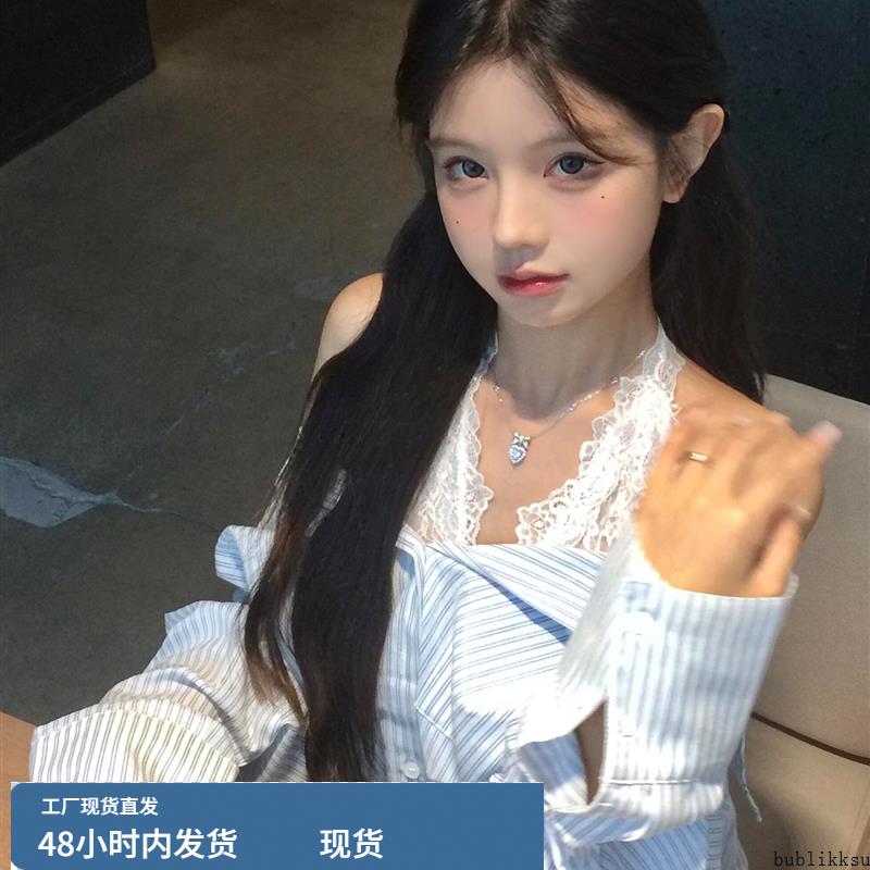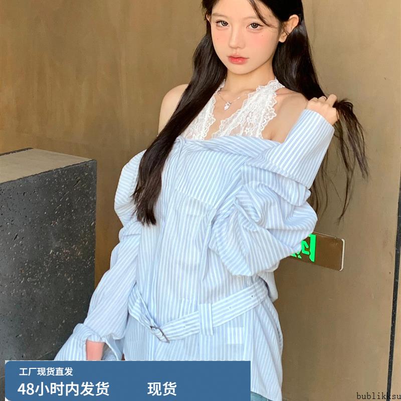 法式蓝色长袖条纹衬衫外套女早初秋季2025新款气质轻奢高级感上衣