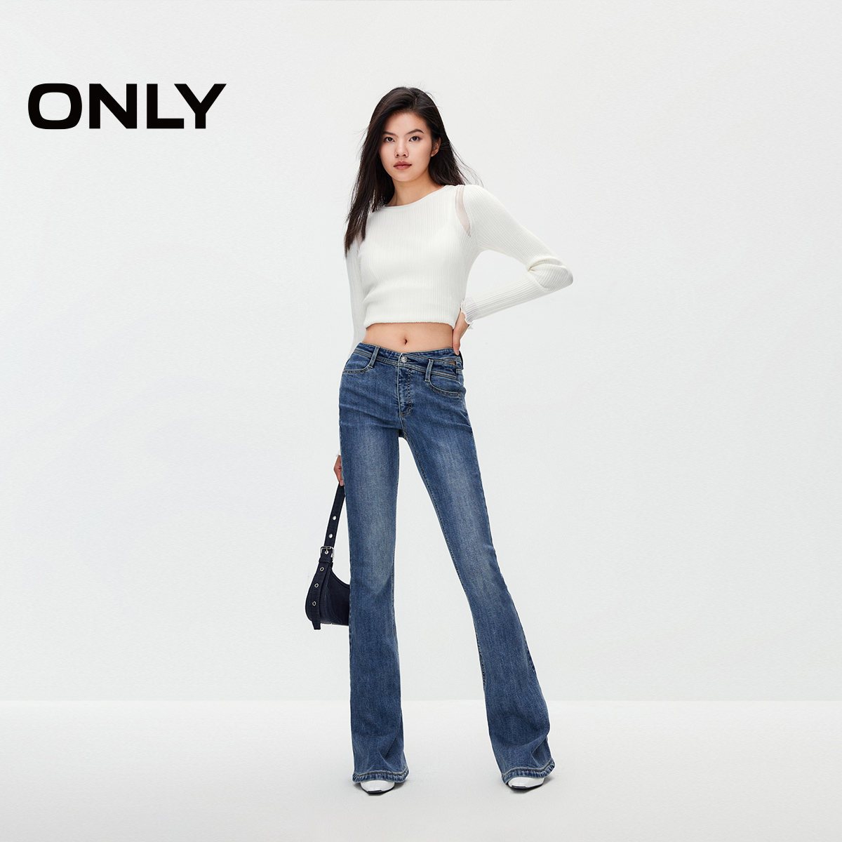 ONLY2026春季新款辣妹爆款马蹄裤镂空显瘦微喇裤喇叭牛仔裤女