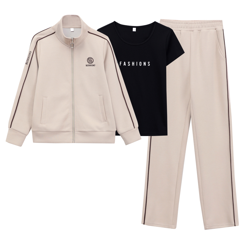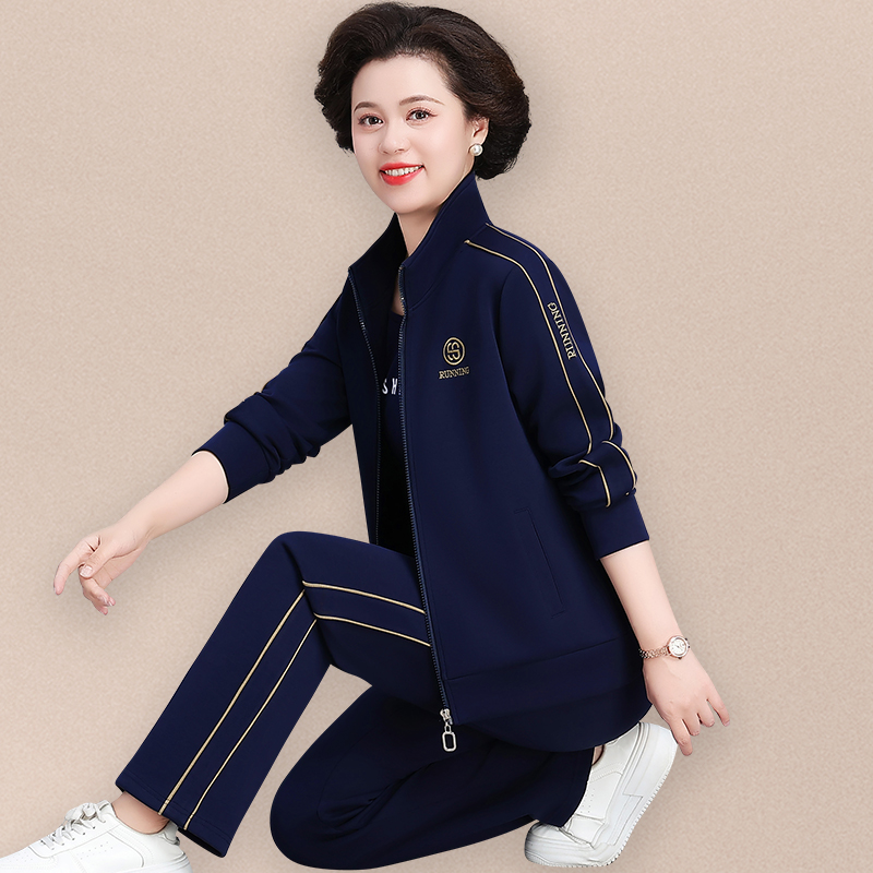 妈妈秋装洋气大码外套女2025新款时尚三件套中年春秋休闲运动套装